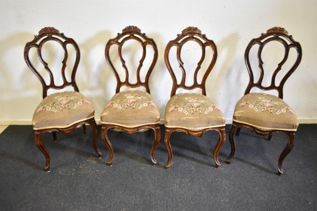 16713. Stolar 4 st Nyrokoko höjd 95 cm slitage på klädsel en med släppt sadelgjord