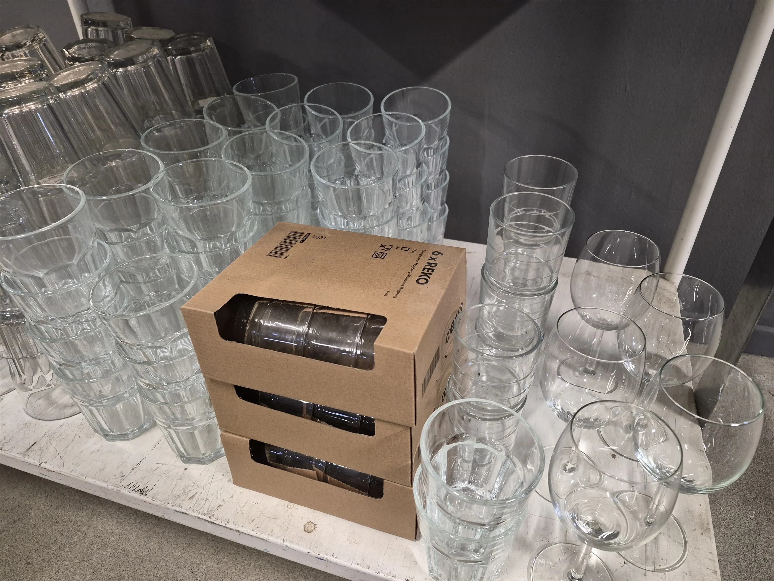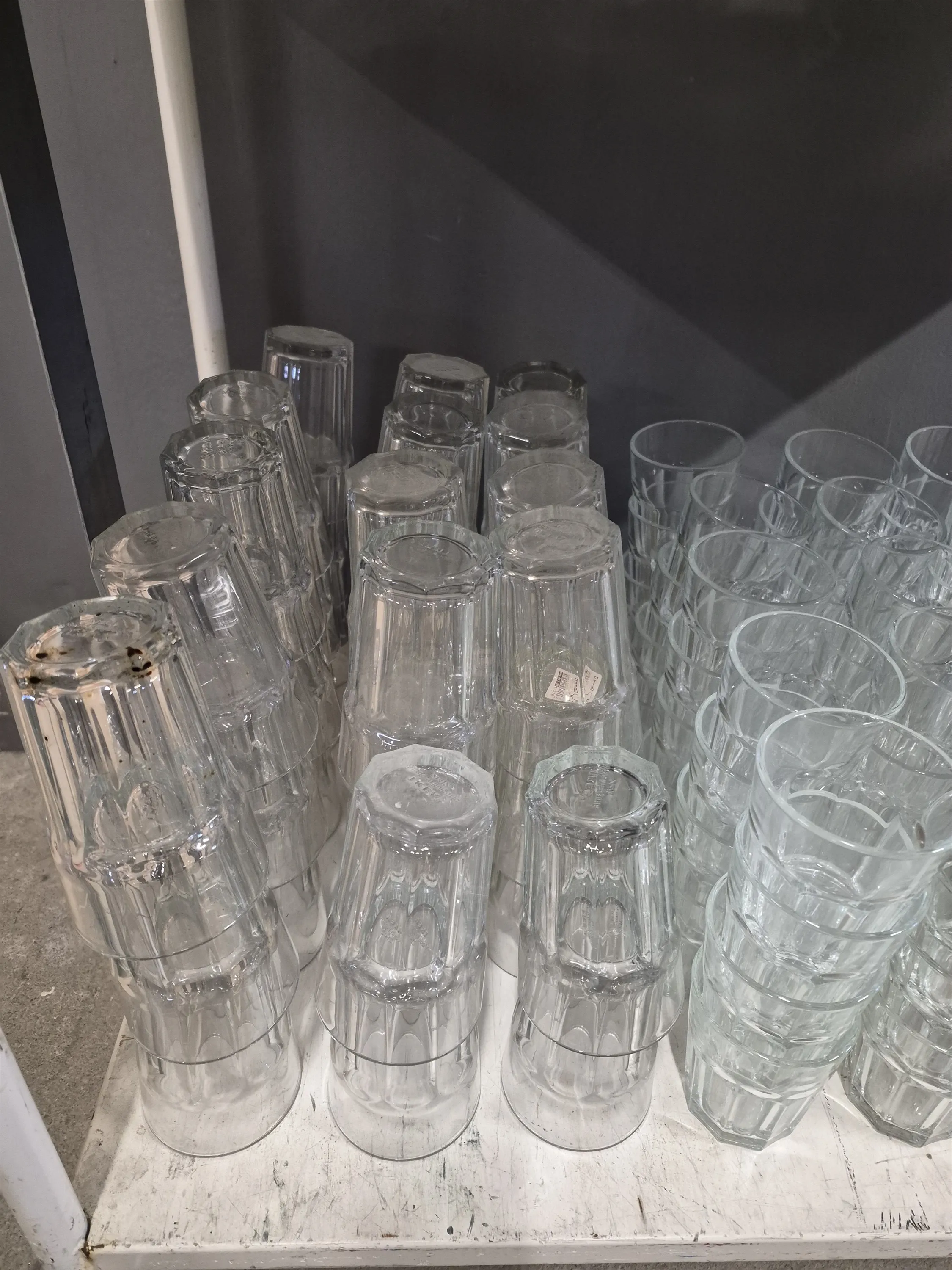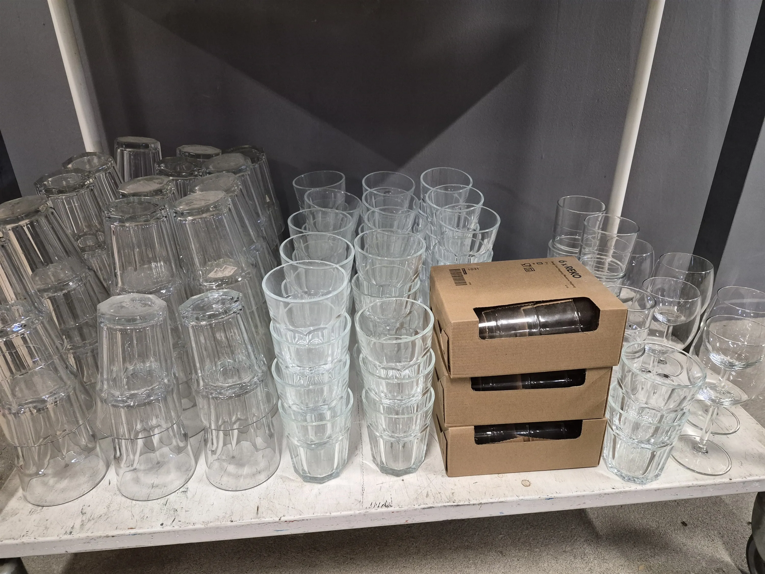 19232. Stort parti dricksglas, vinglas och champagneglas, högsta höjd 22 cm, vagn ingår ej