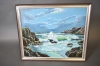 6996. Sv Christiansson olja på duk, "Våg vid klippor" mått 68 x 57 cm