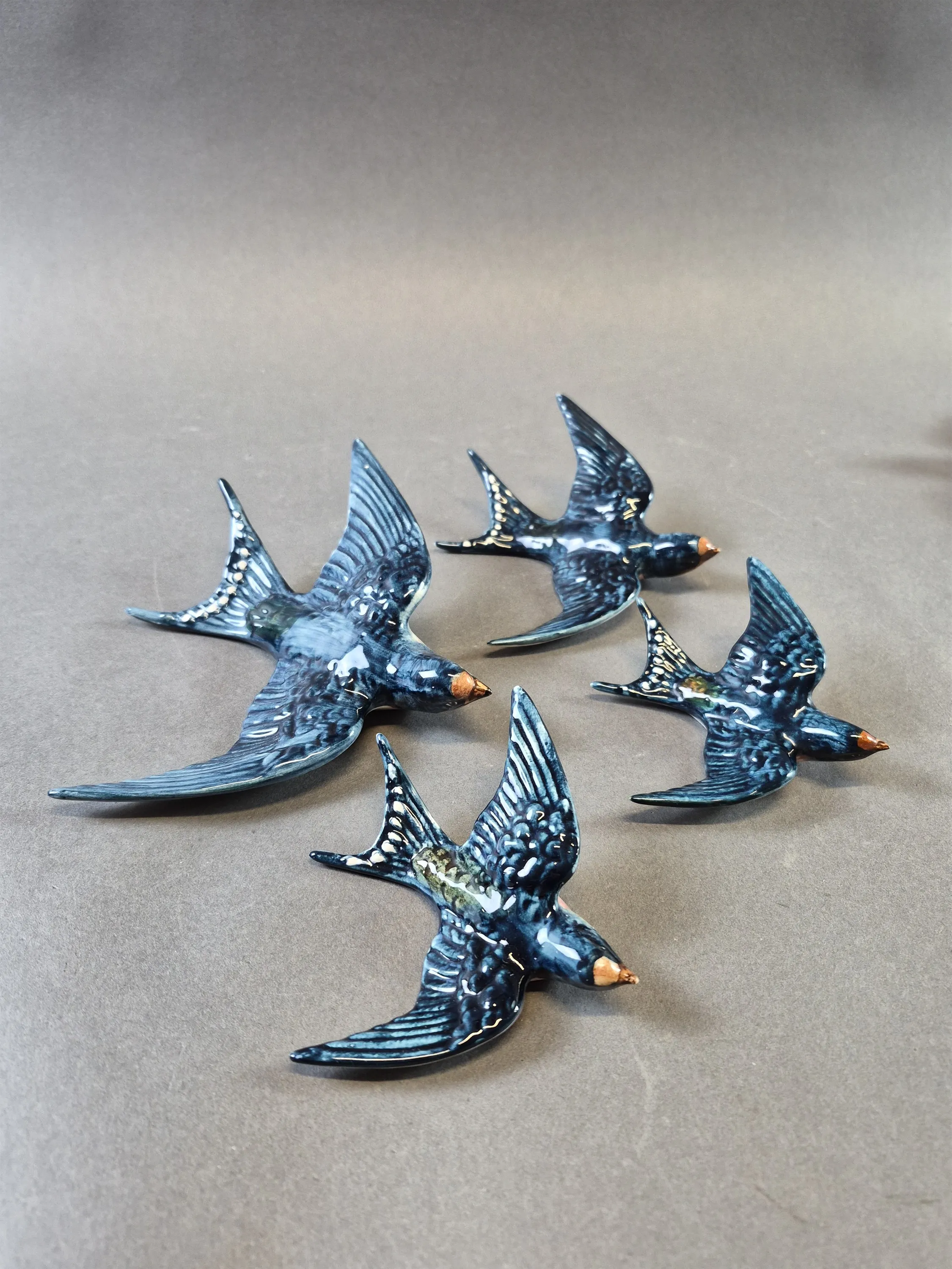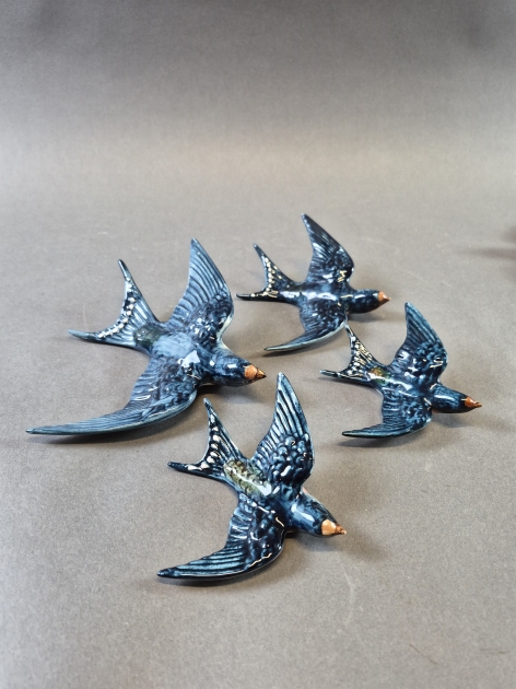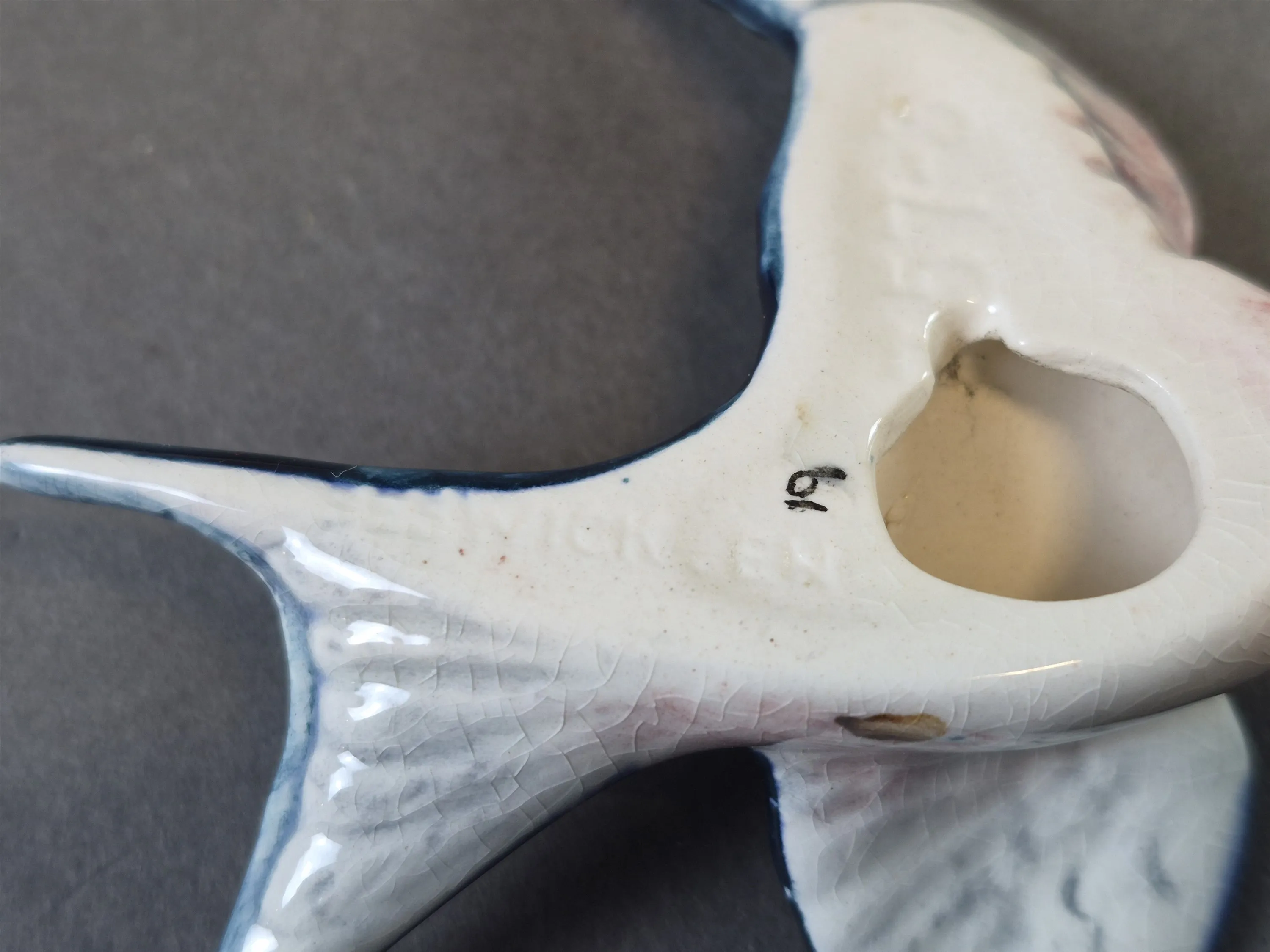 20443. Svalor 4 st, England, keramik, längsta mått 18,5 cm