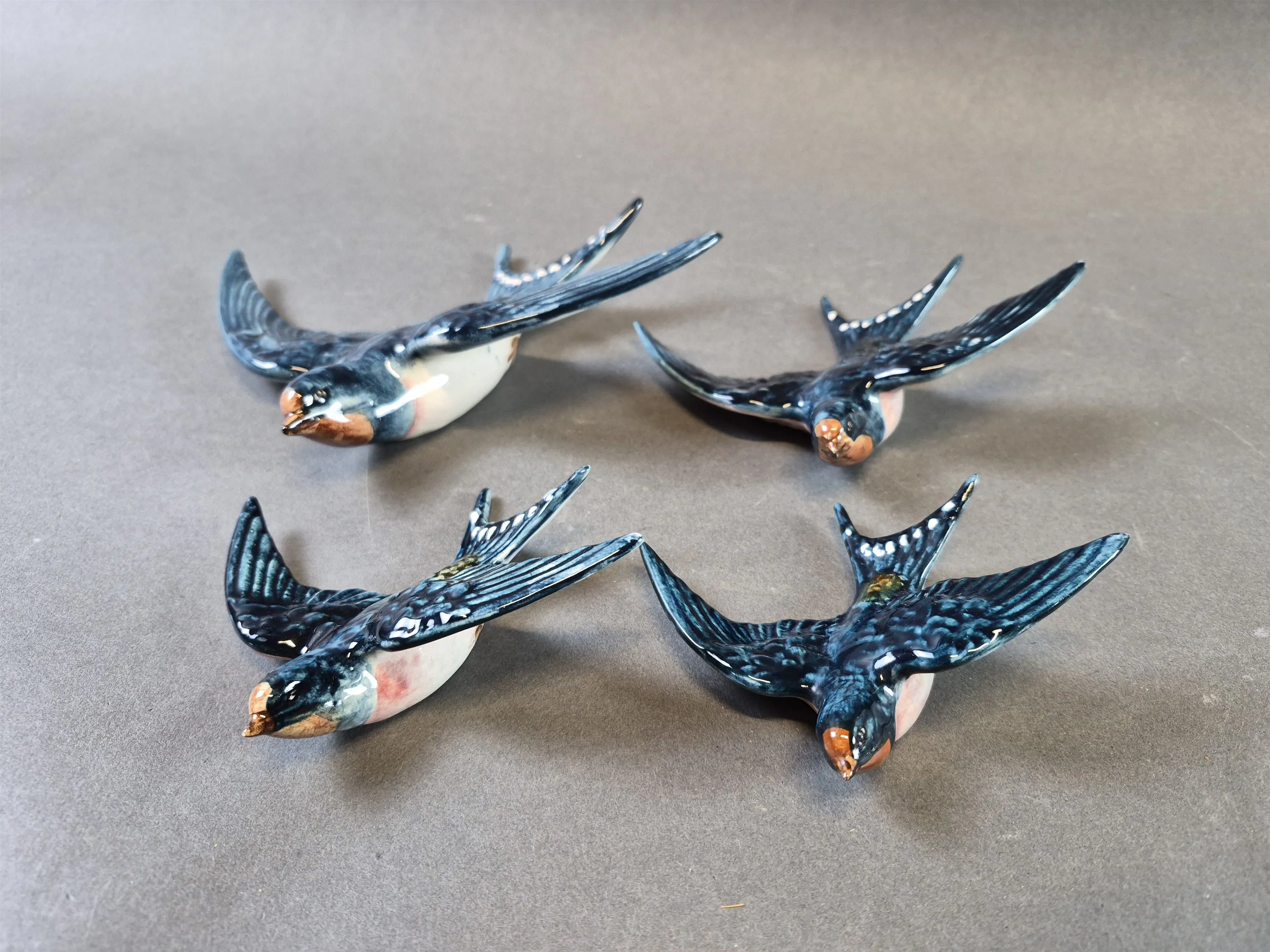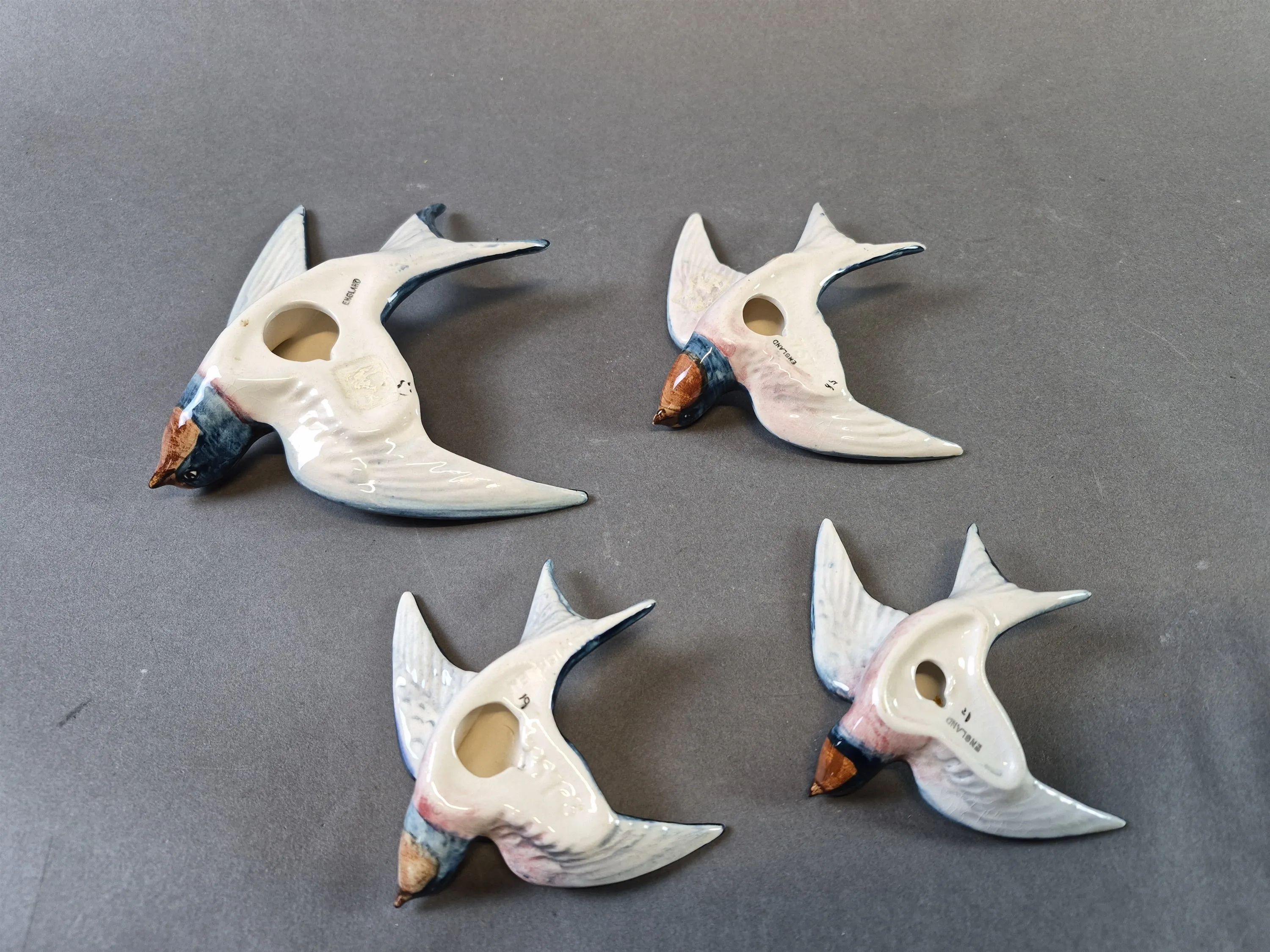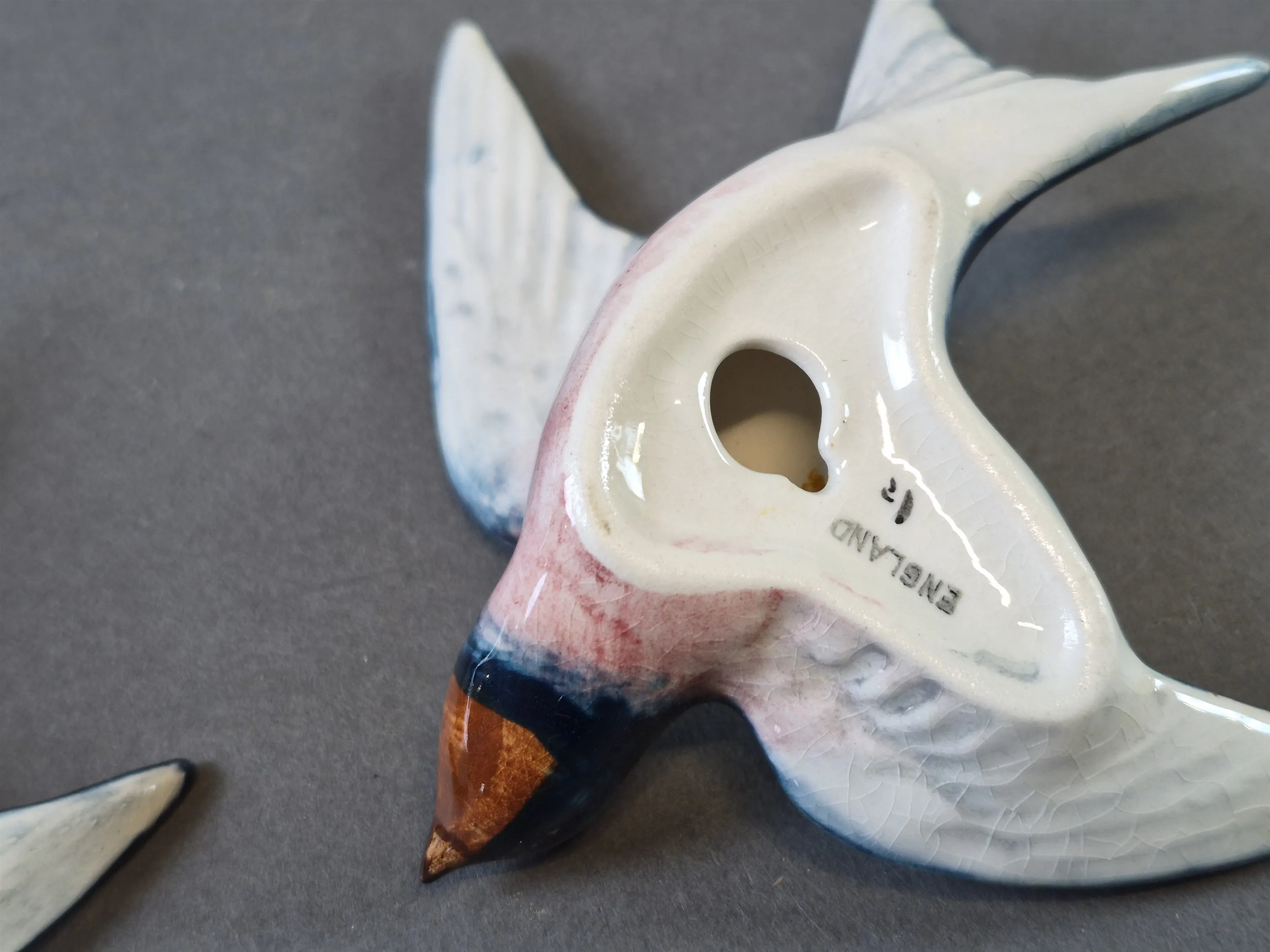 20443. Svalor 4 st, England, keramik, längsta mått 18,5 cm