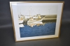 15449. Sven Åke Svensson, litografi, "Vattenspegling hamnen Simrishamn", mått 77 x 62 cm