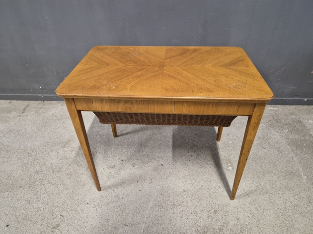 19097. Sybord, alm, 1940 tal skjutbarskiva, höjd 61 cm, mått 72 x 48 cm