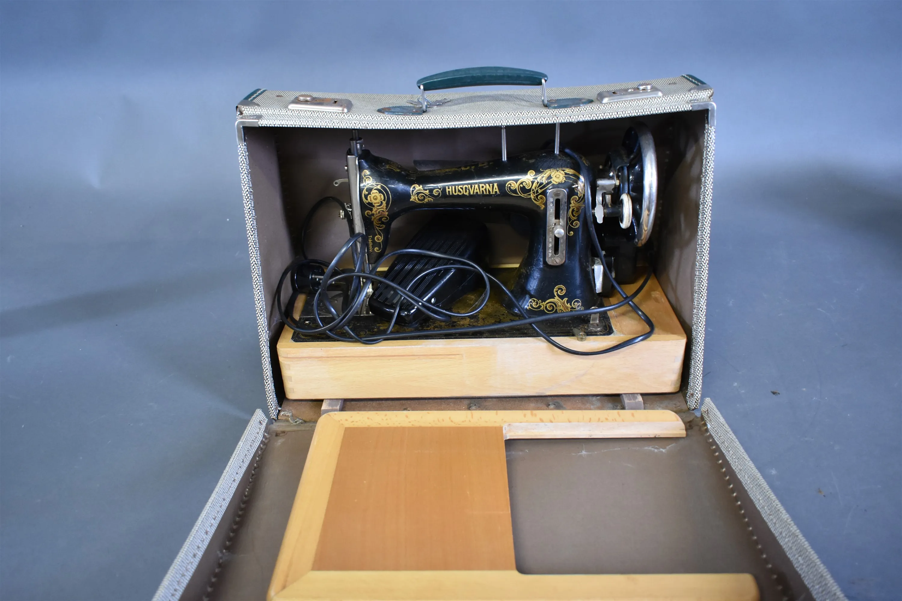 16726. Symaskin Husqvarna, längd på låda 50 cm