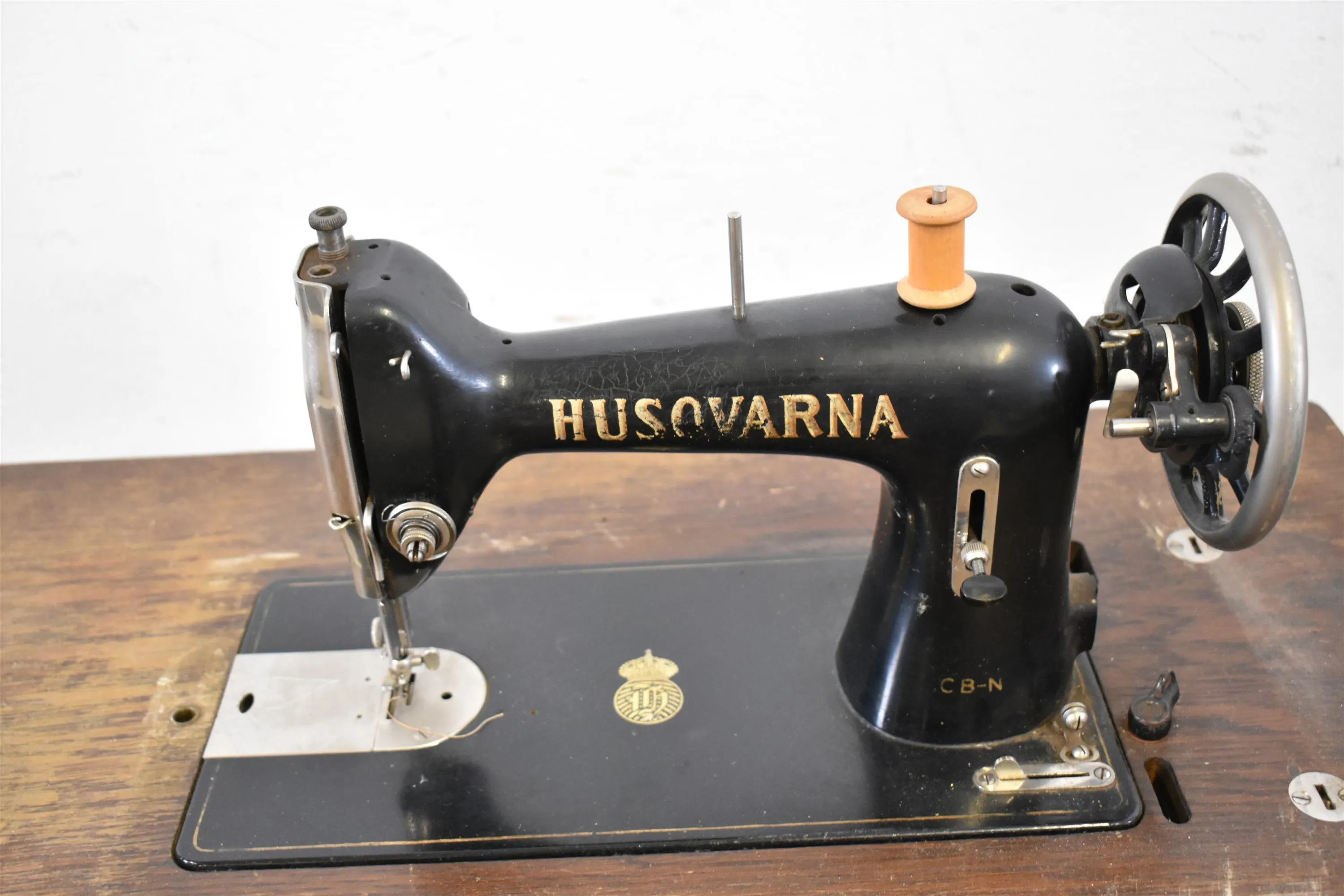 13638. Symaskin med underrede Husqvarna, höjd 113 cm