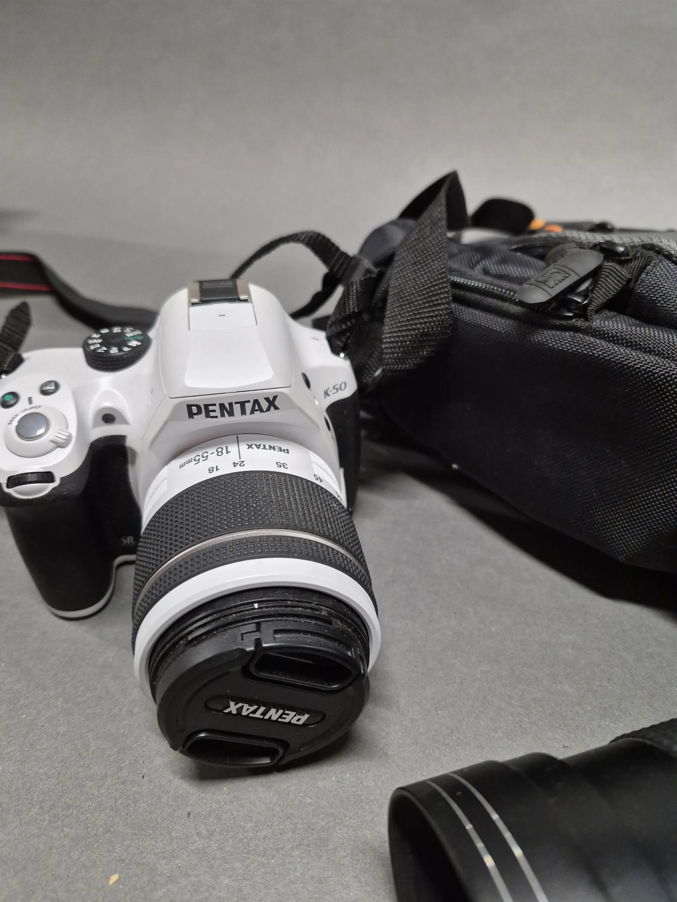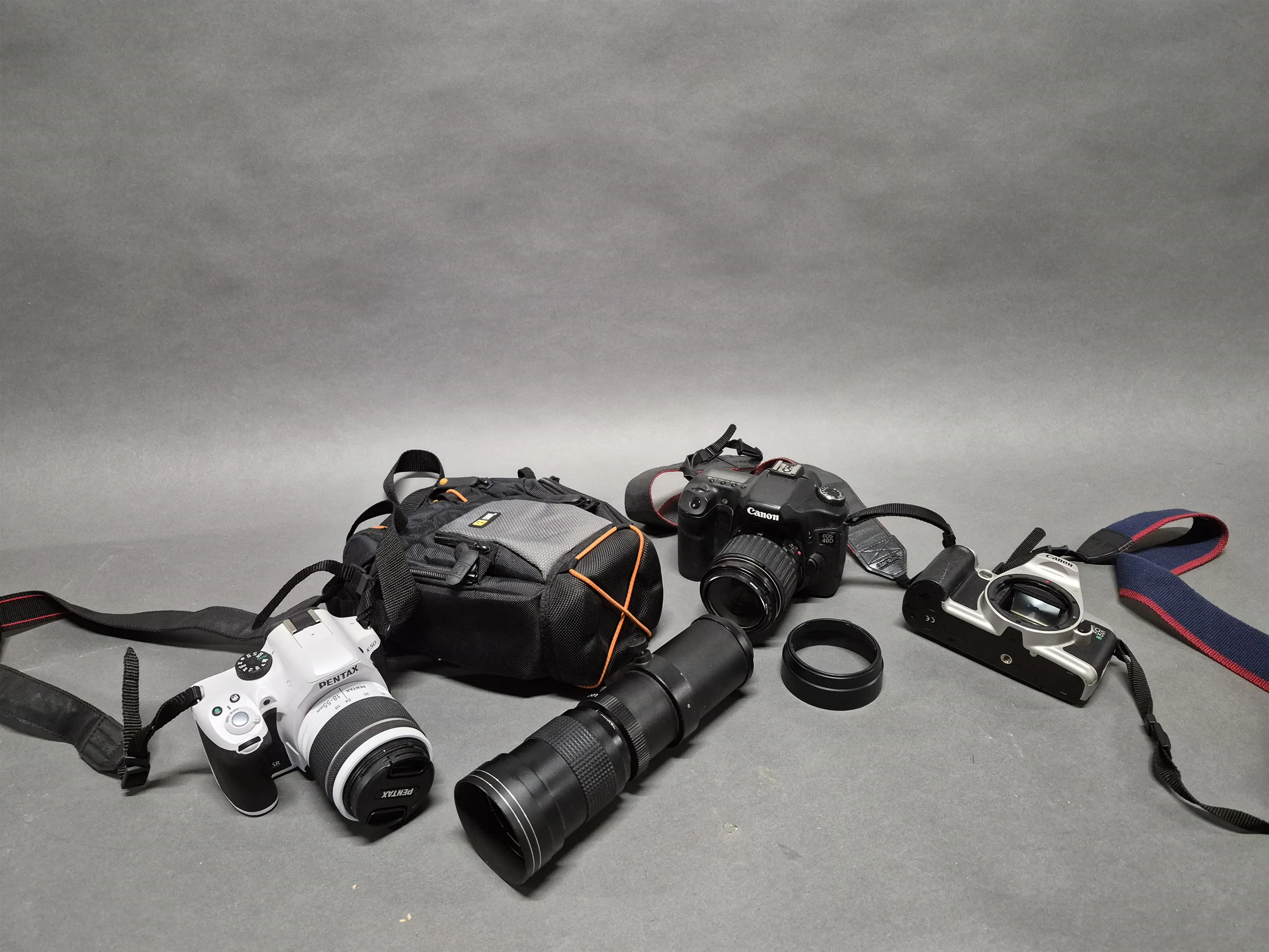 17632. Systemkameror, objektiv och tillbehör bla Pentax K-50 och Canon Eos 40D, ej testat