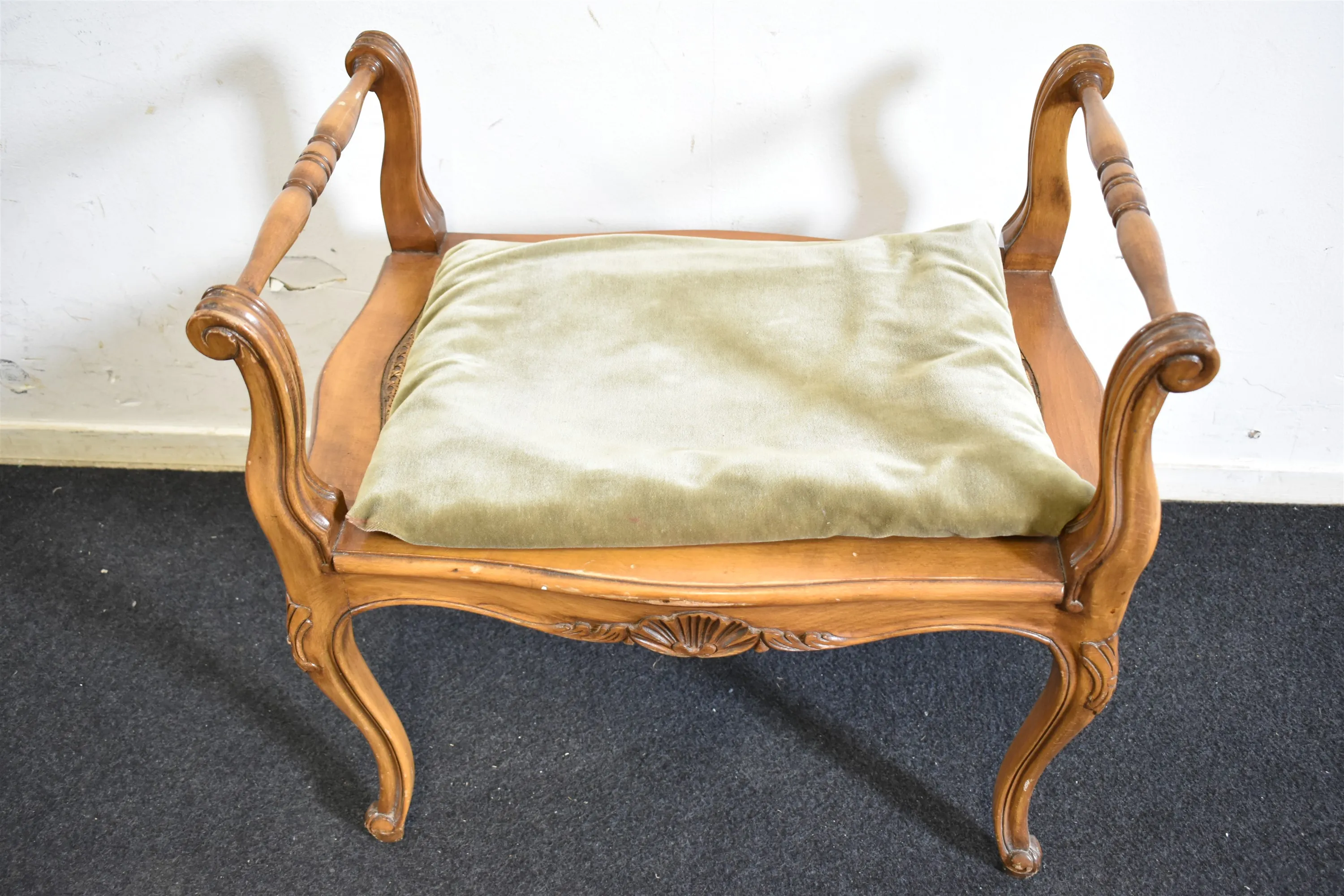 15408. Taburett, Fransk rokokostil, rottingsits, höjd 65 cm, bredd 65 cm, djup 45 cm