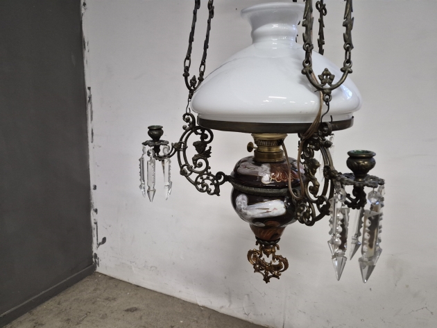 19062. Takfotogenlampa, majolika höjd 135 cm