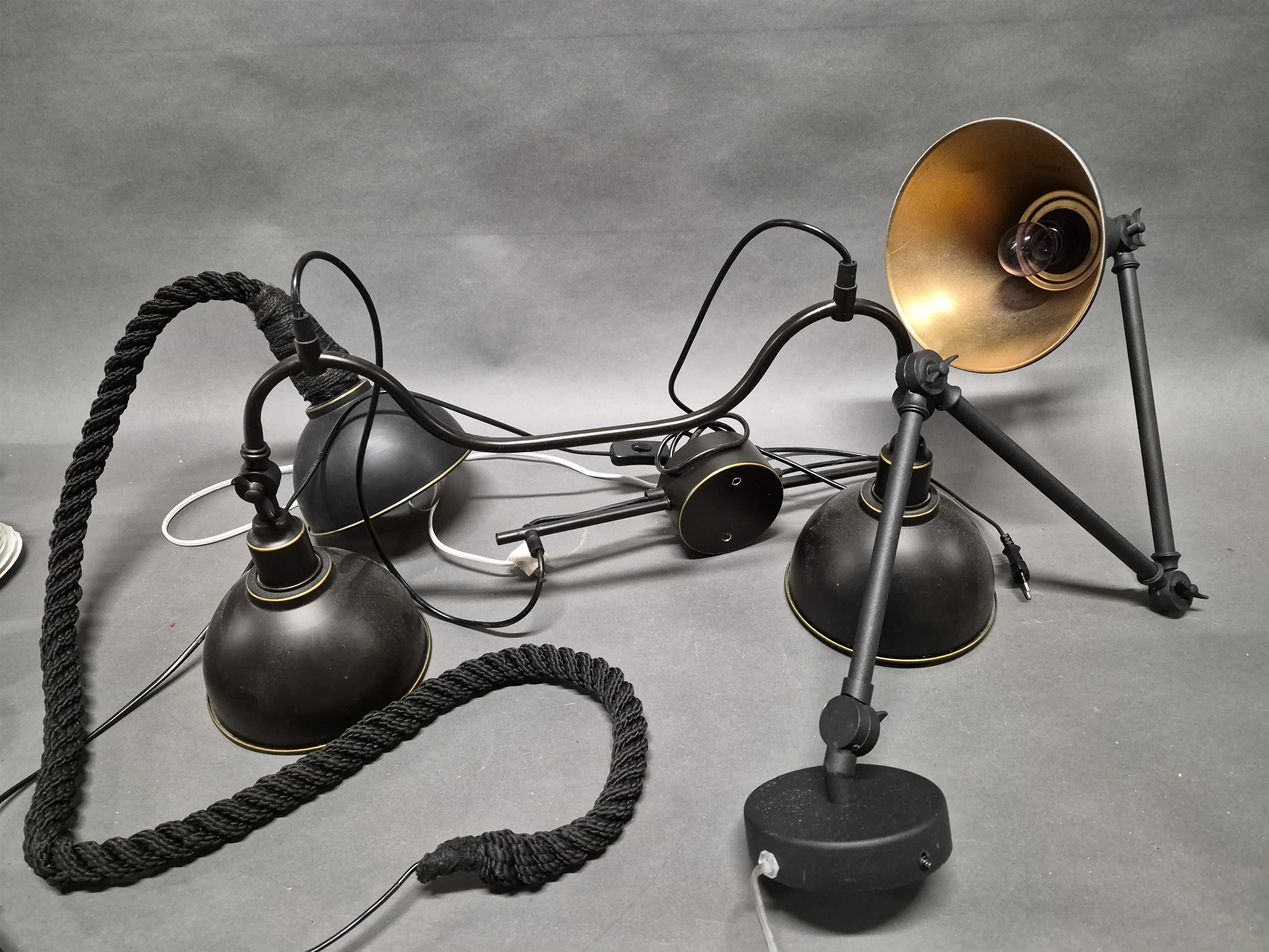 17564. Taklampa bredd 68 cm, lampa i rep & vägglampa