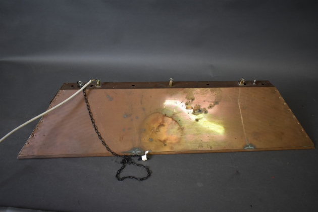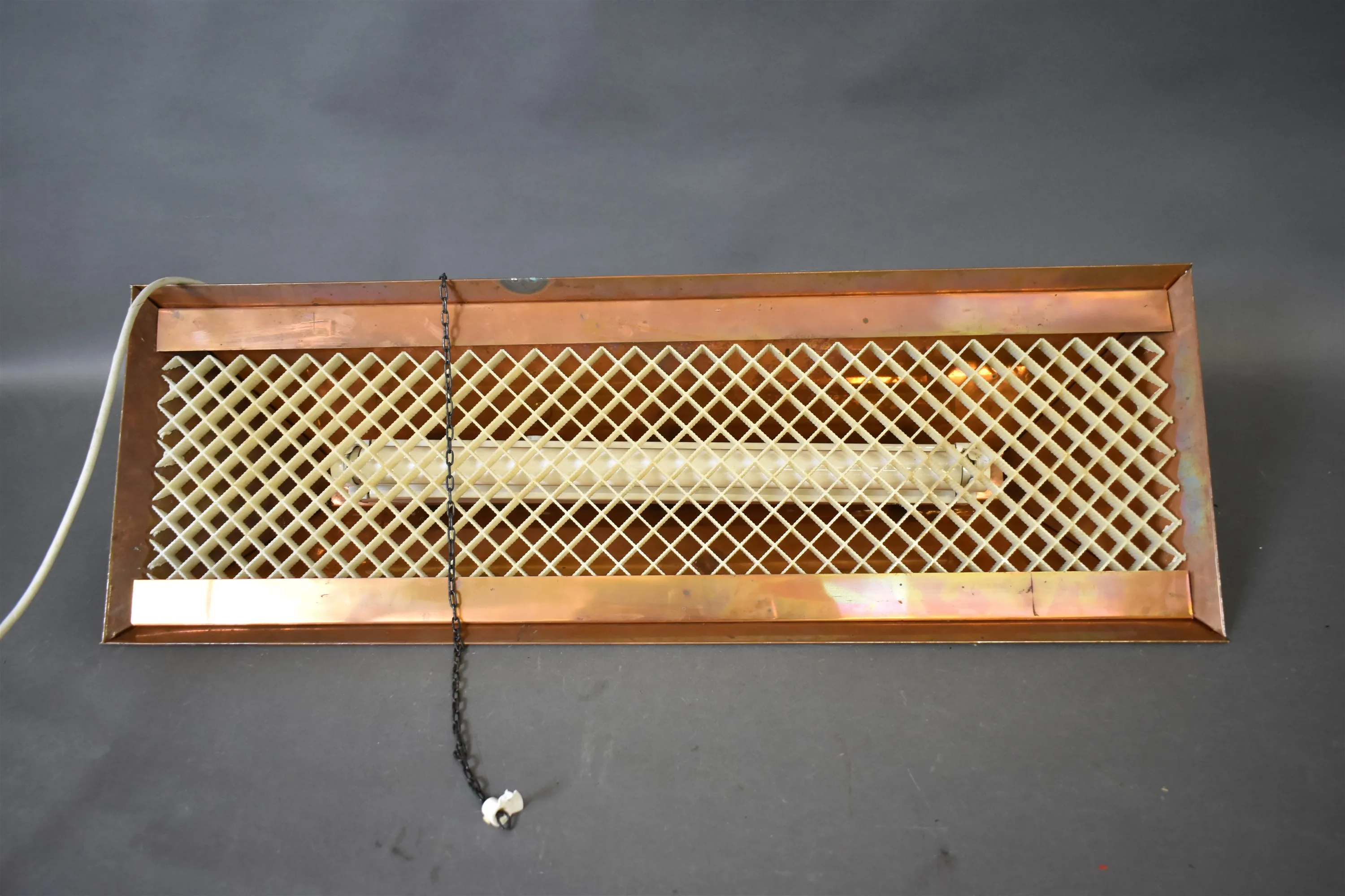 16643. Taklampa, koppar, mått 98 x 34 cm, höjd 20 cm en kedja saknas
