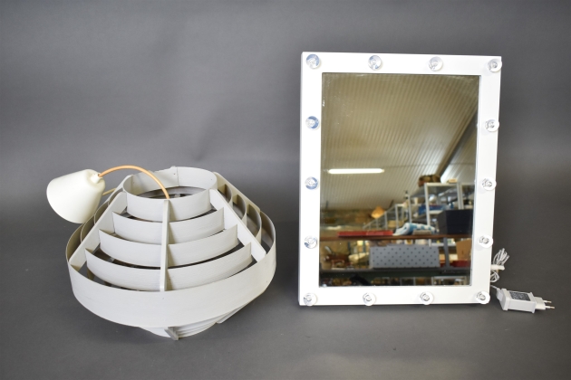 12688. Taklampa och sminkspegel med belysning, mått på spegel 46x36 cm