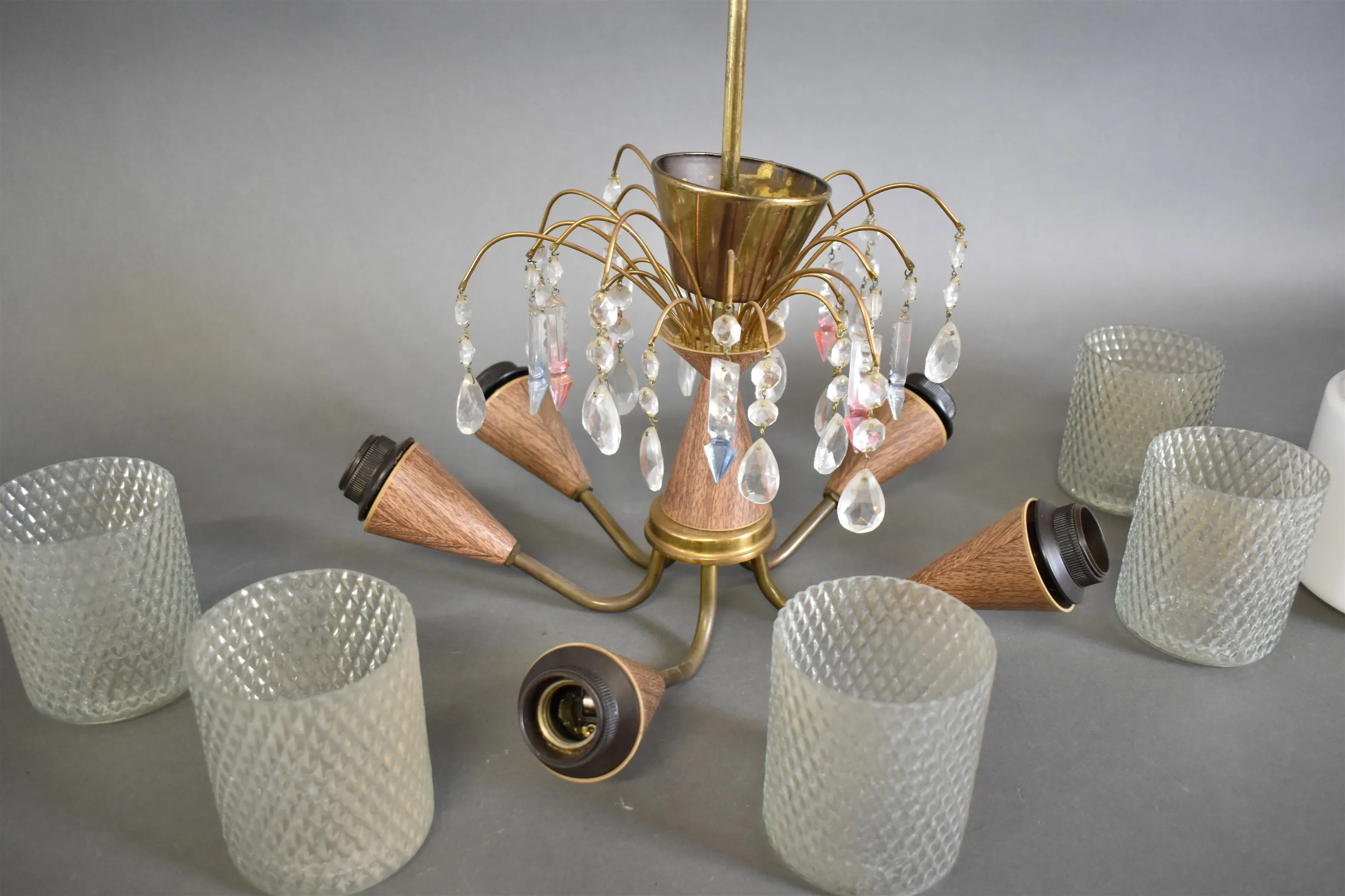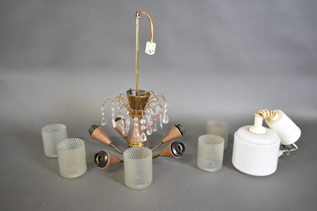 15088. Taklampor 2 st bla 5-armad med prismor, högsta höjd 56 cm