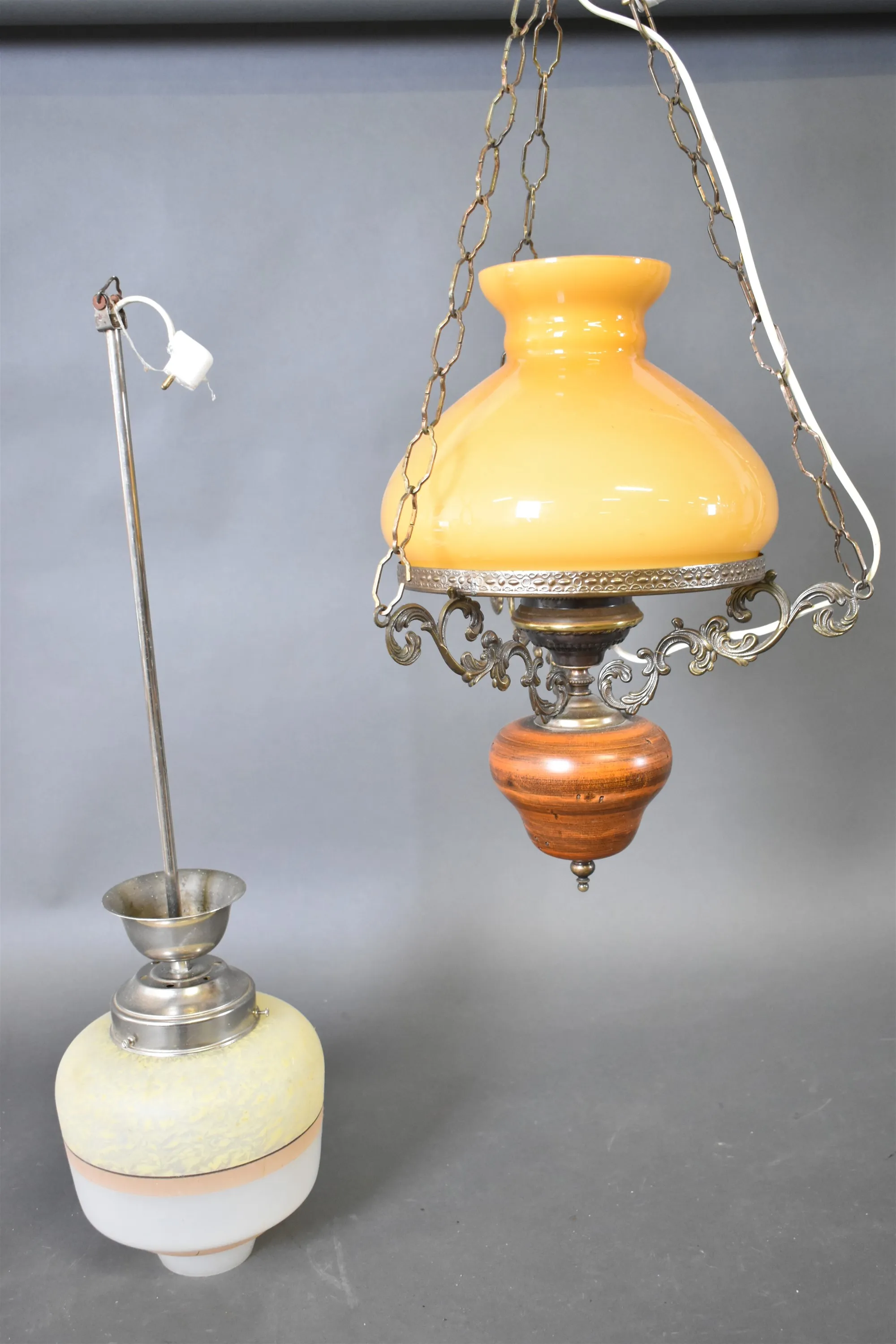 13637. Taklampor 2 st bla elektrifierad fotogenlampa, högsta höjd 74 cm