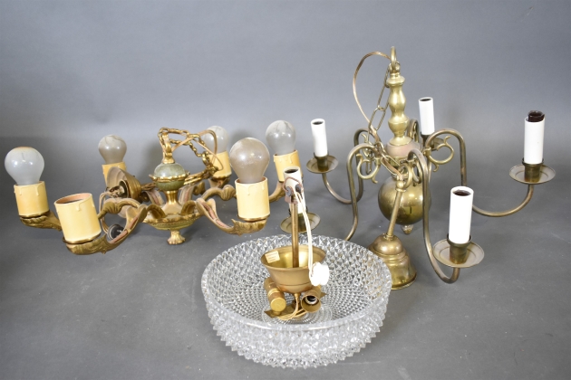 14122. Taklampor 3 st bl.a Eriksmålaglas, största diameter 50 cm