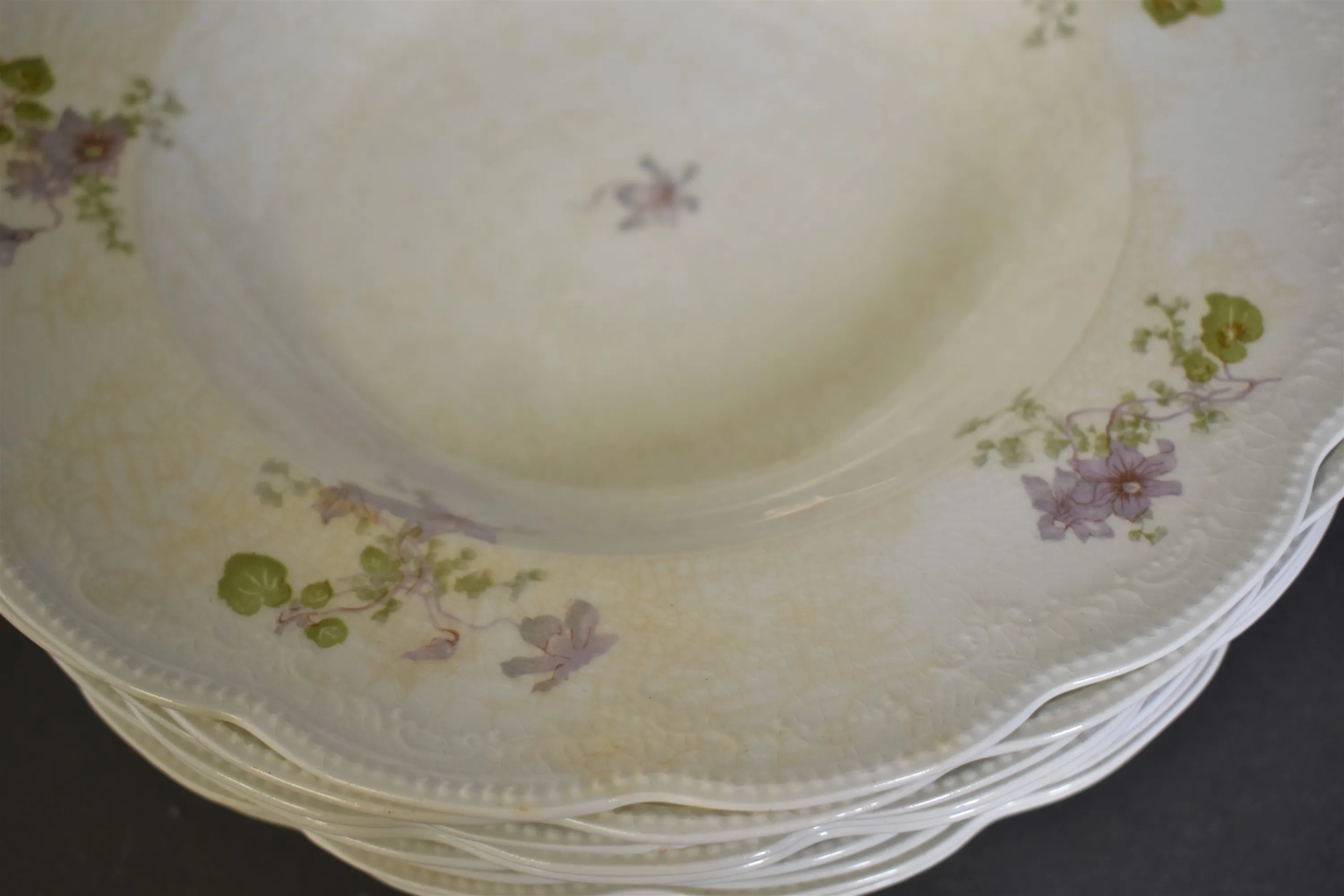 Krackeleringar och missfärningar finns på en del tallrikar