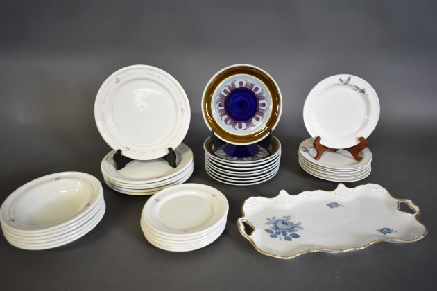 15455. Tallrikar och fat; Rörstrand, Gustavsberg och Hackefors, längsta mått 40 cm