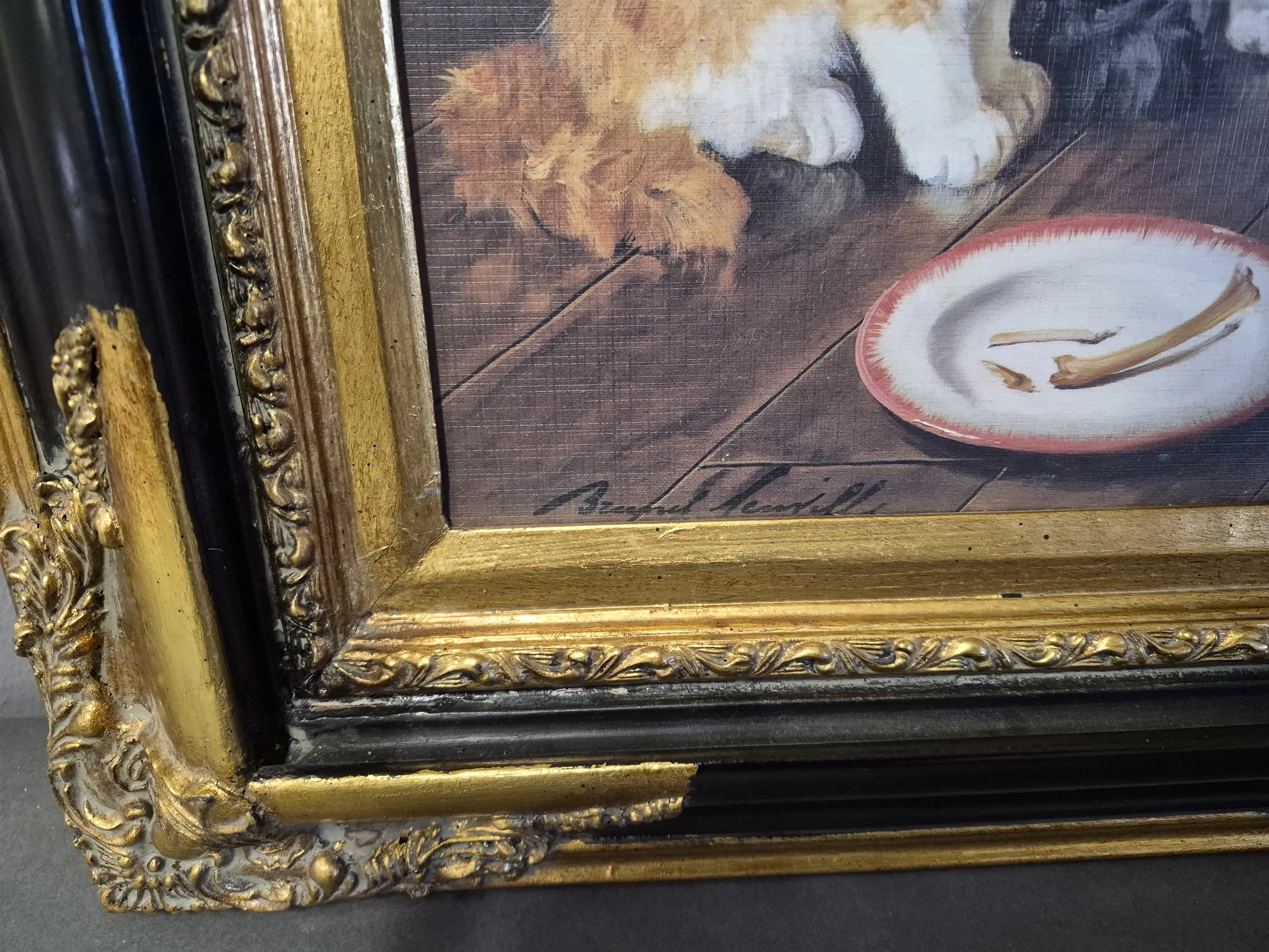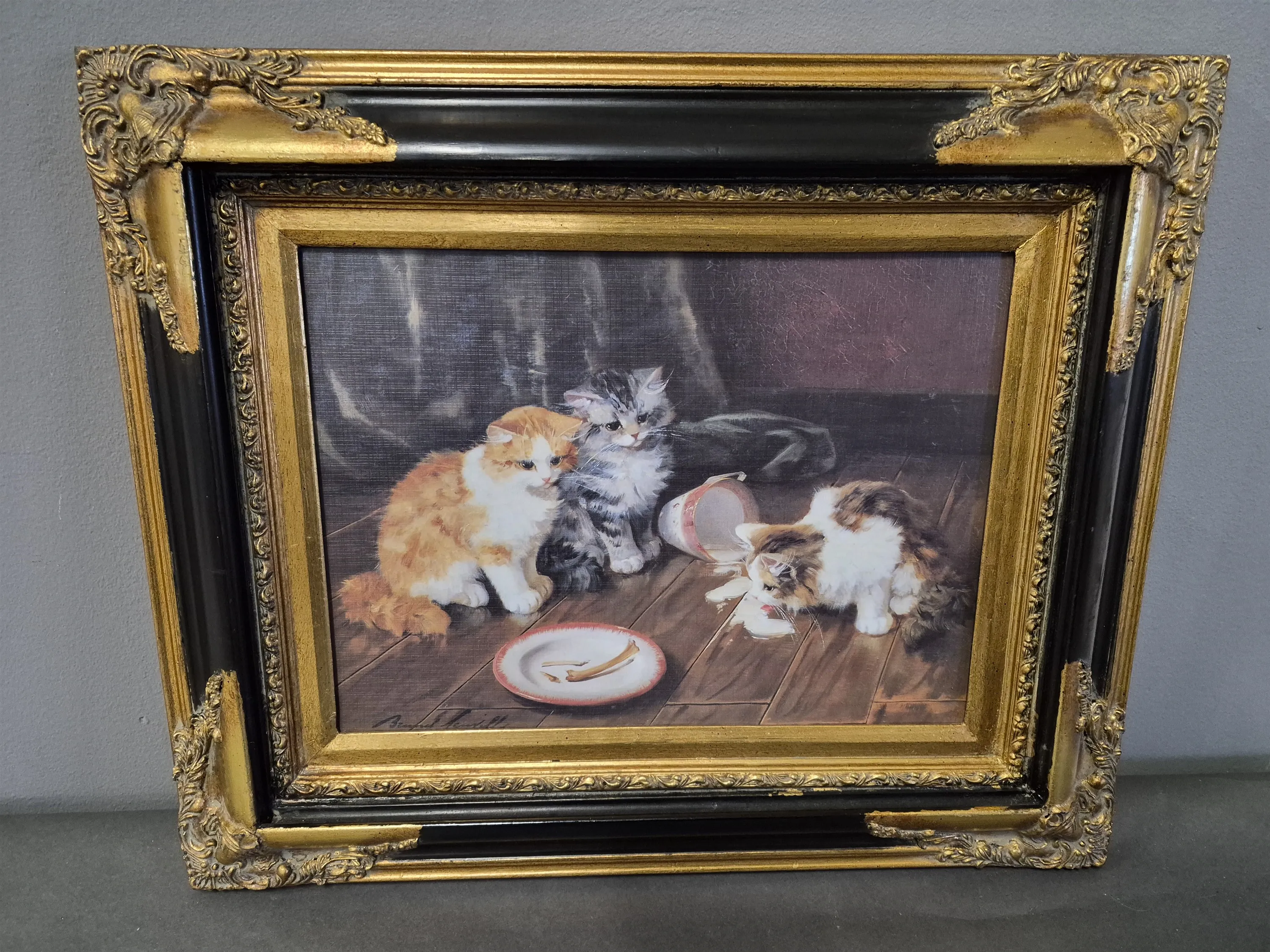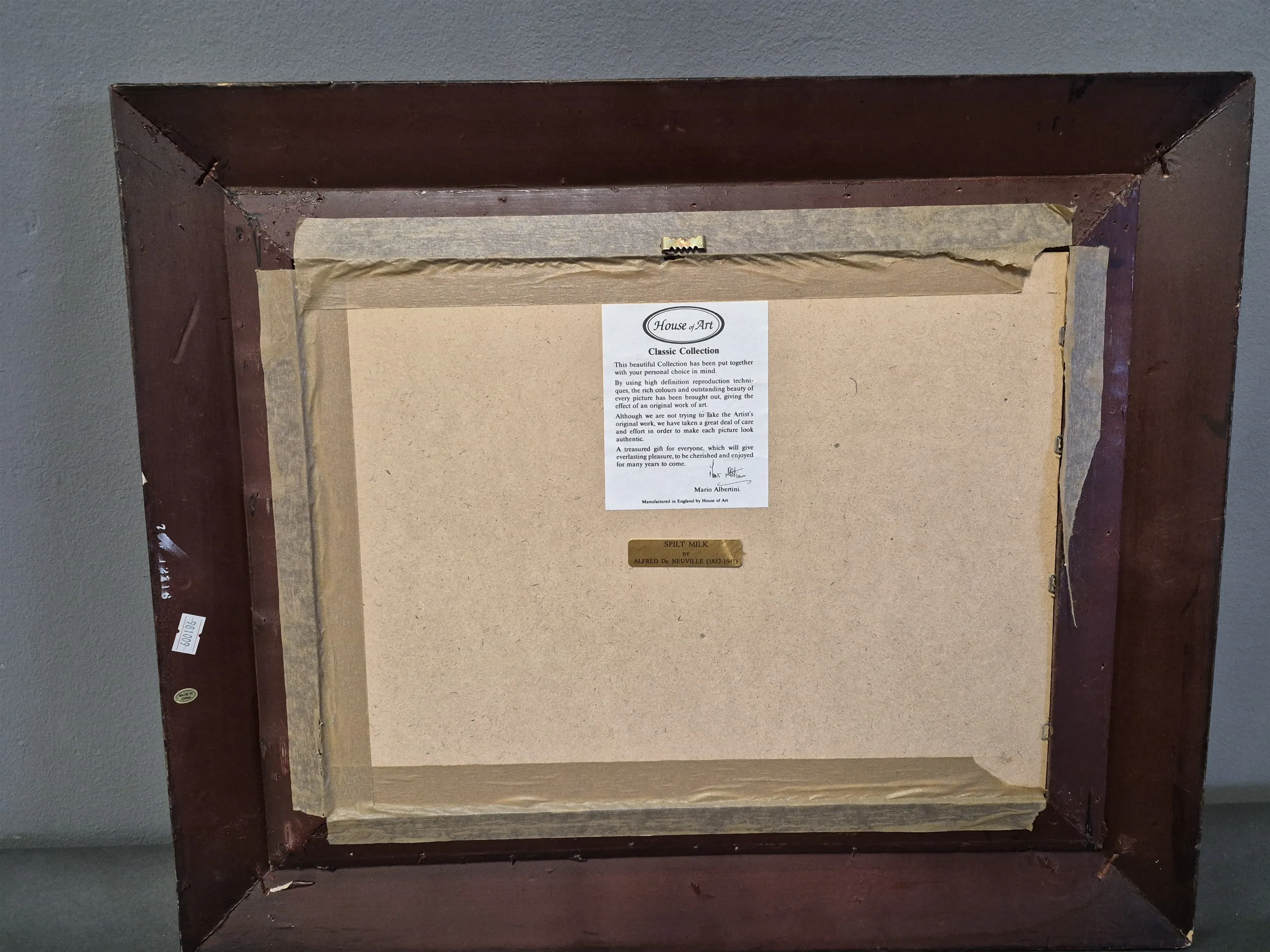 18254. Tavla Reproduktion "Spild mjölk" Alfred De Neuville, mått 48 x 59 cm