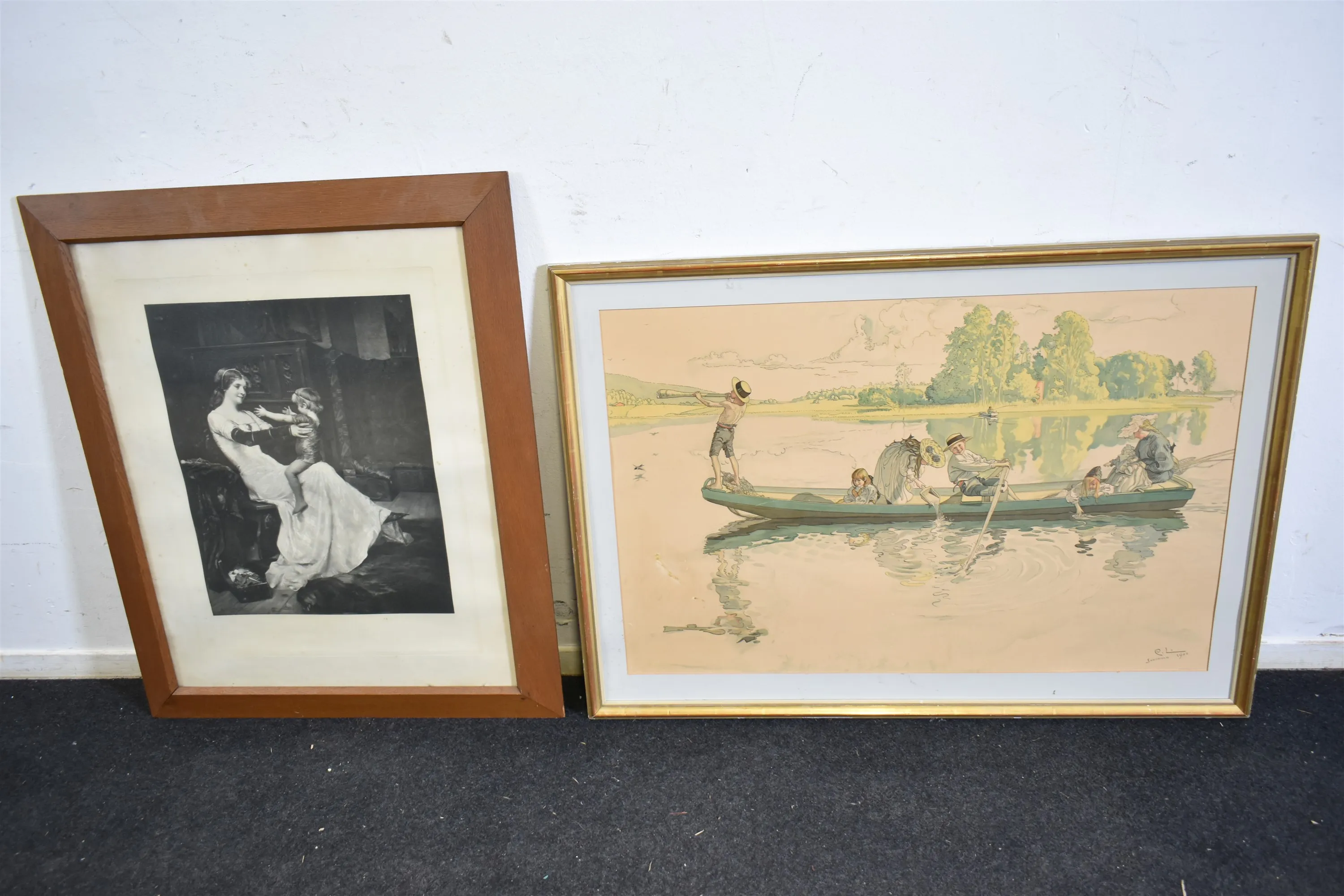 14656. Tavlor 2 st bl.a Carl Larsson reproduktion största mått 106 x 76 cm