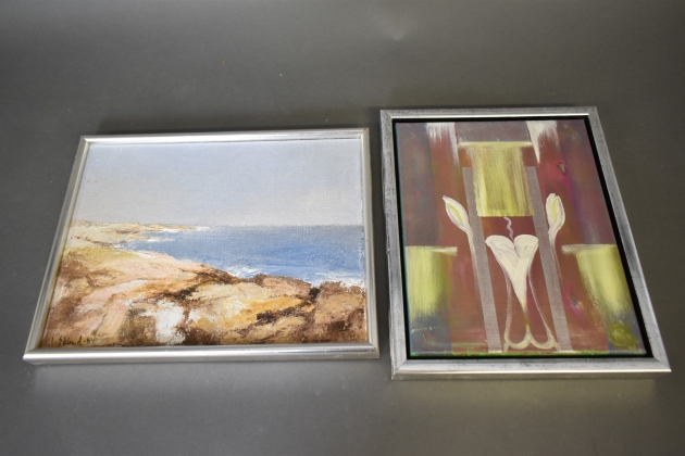 15011. Tavlor 2 st bl.a I.Eklind oljor på duk, största mått 29 x 30 cm
