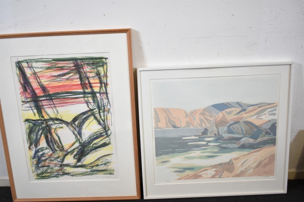 11675. Tavlor 2 st bla litografi kustmotiv, största mått 89x69 cm