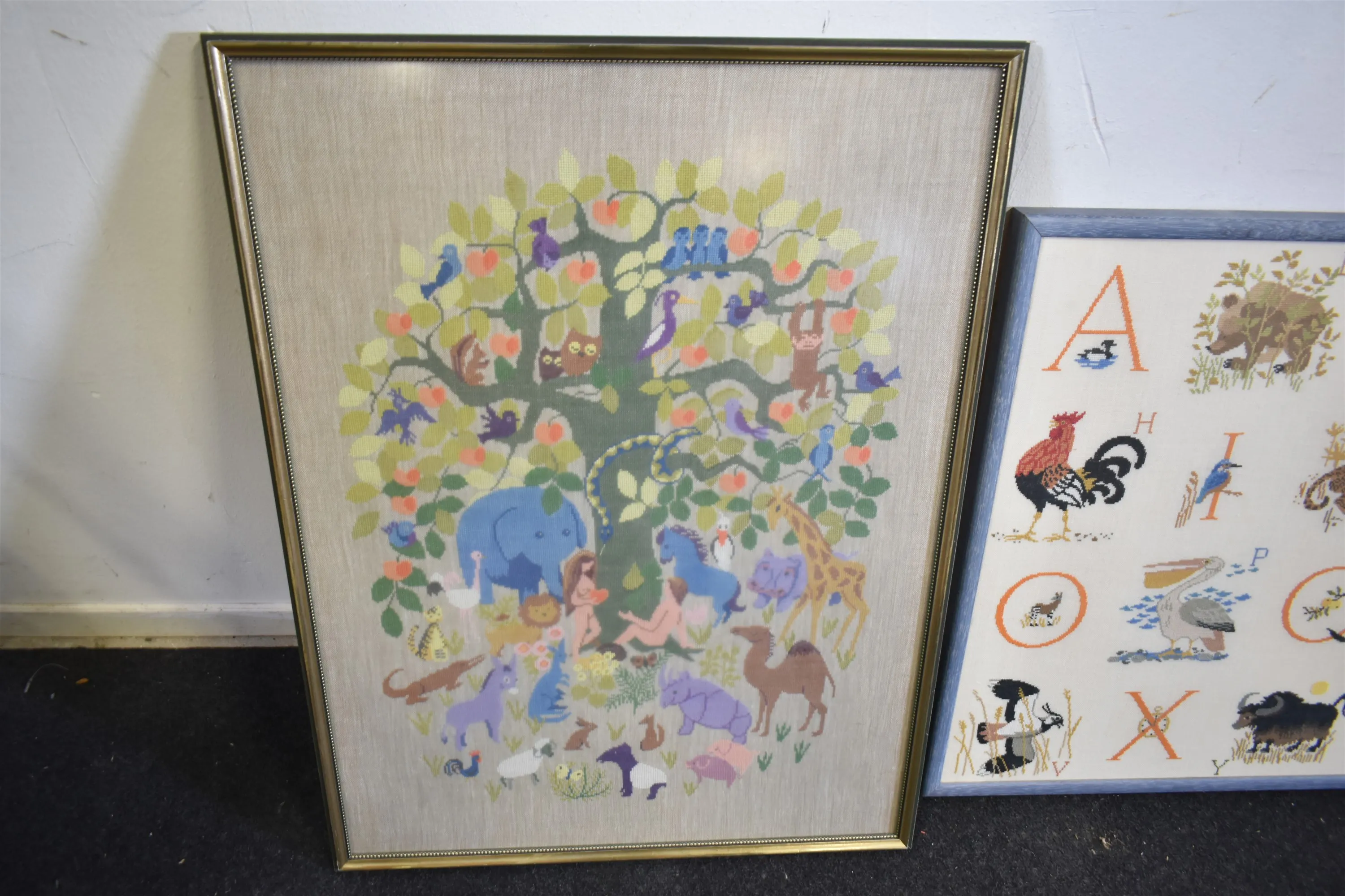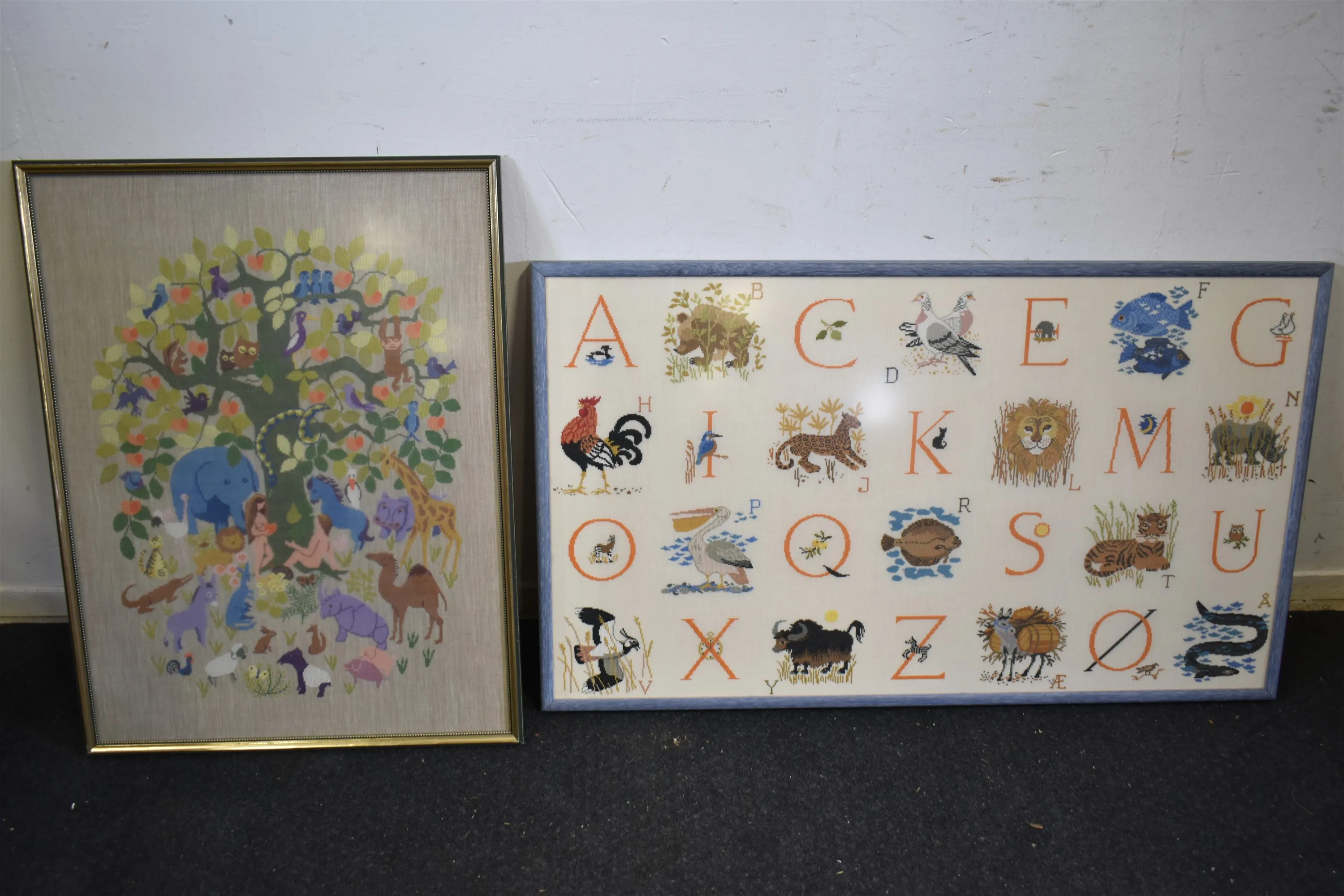 4469. Tavlor 2 st Broderade, största mått 110 cm x 65 cm