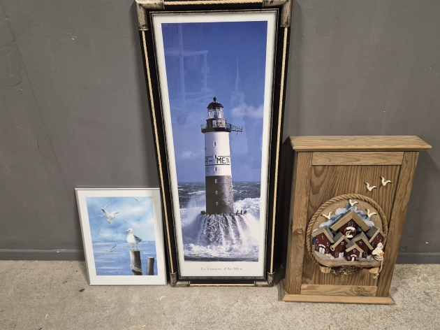 17818. Tavlor 2 st marina & nyckelskåp kustmotiv högsta 102 cm