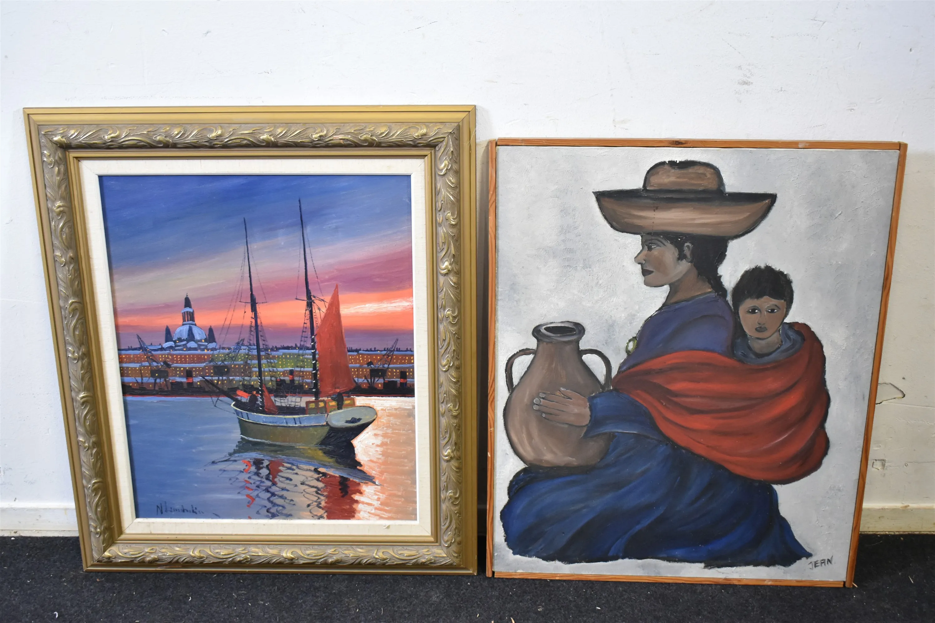 13802. Tavlor 2 st, Nils Landelius & Jean, största mått 80 x 70 cm