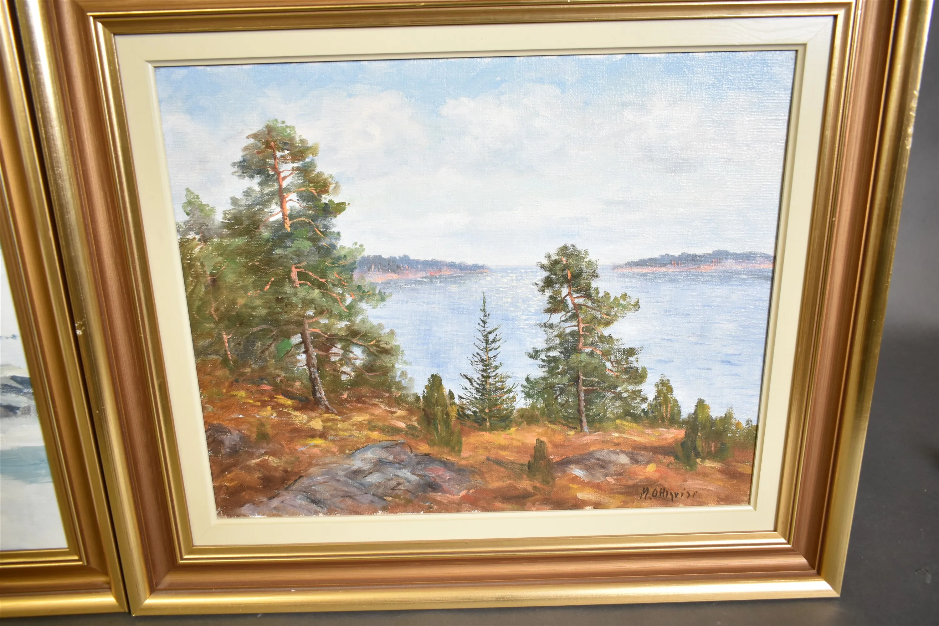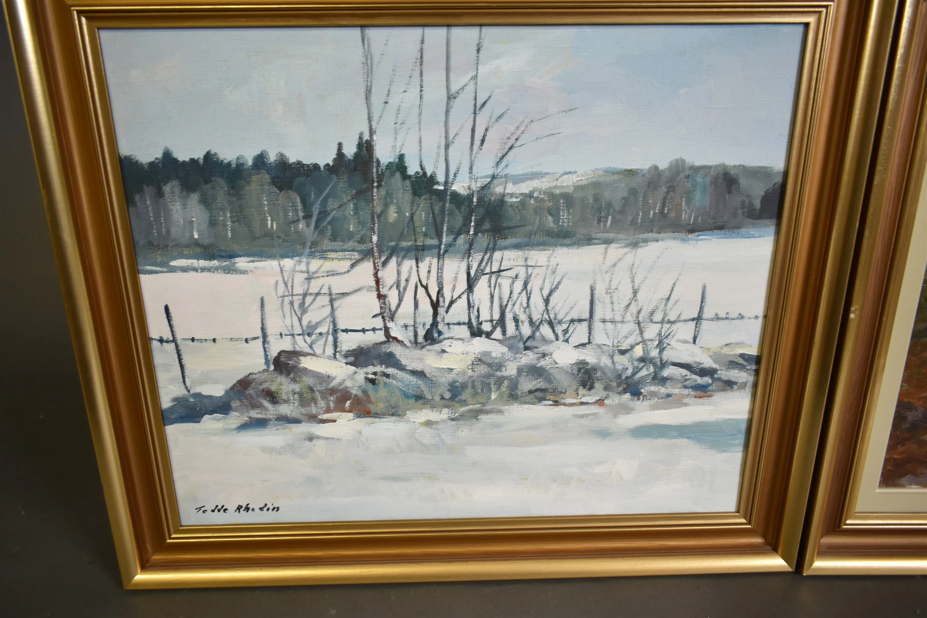 12186. Tavlor 2 st olja på duk bl.a Tedde Rhodin, största mått 46 x 40 cm