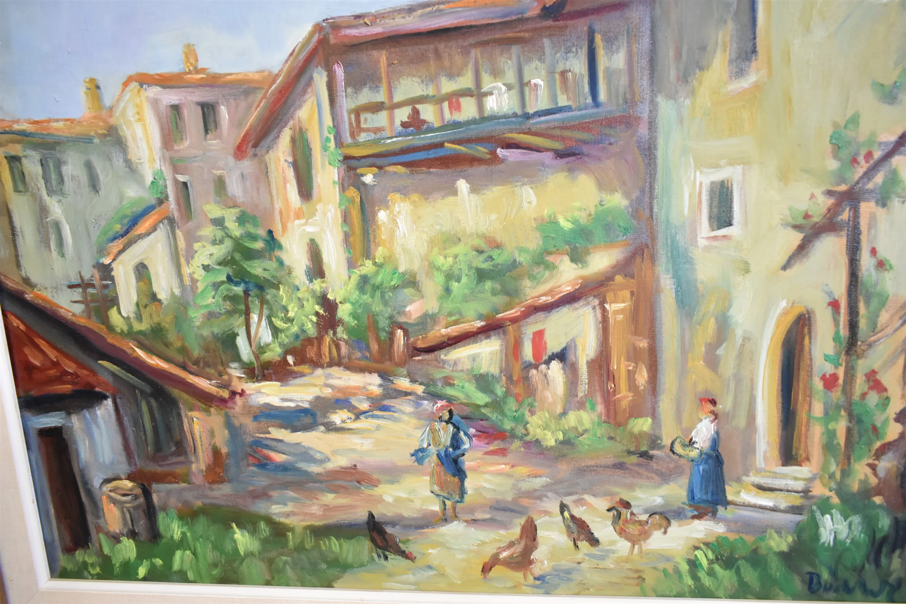 12540. Tavlor 2 st, olja på duk, "Husmotiv" mått 70 x 78 cm