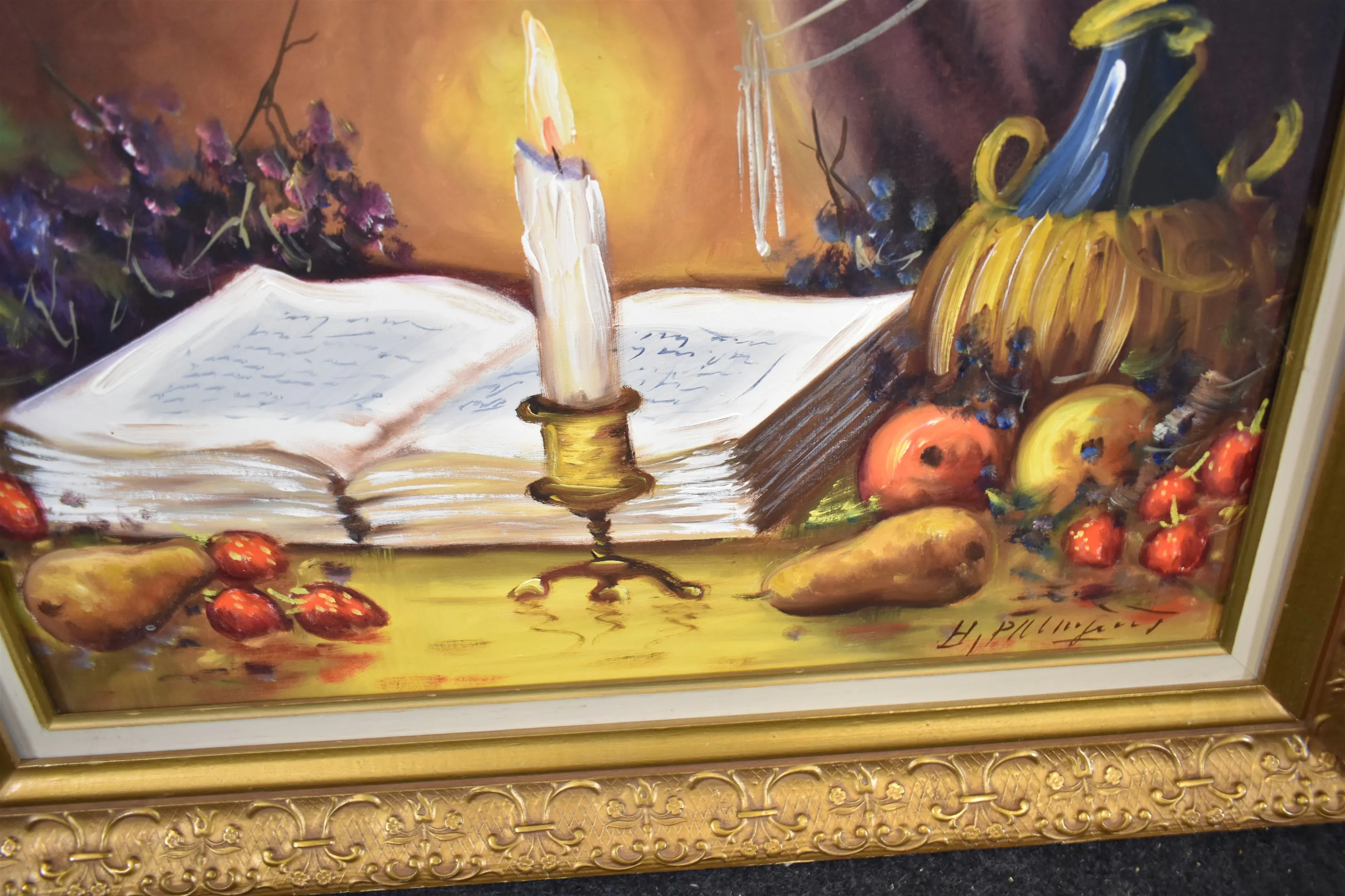 12562. Tavlor 2 st olja på duk, största mått 105 x 76 cm