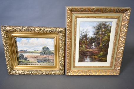 8446. Tavlor 2 st, olja på duk, största mått 43 x 53 cm