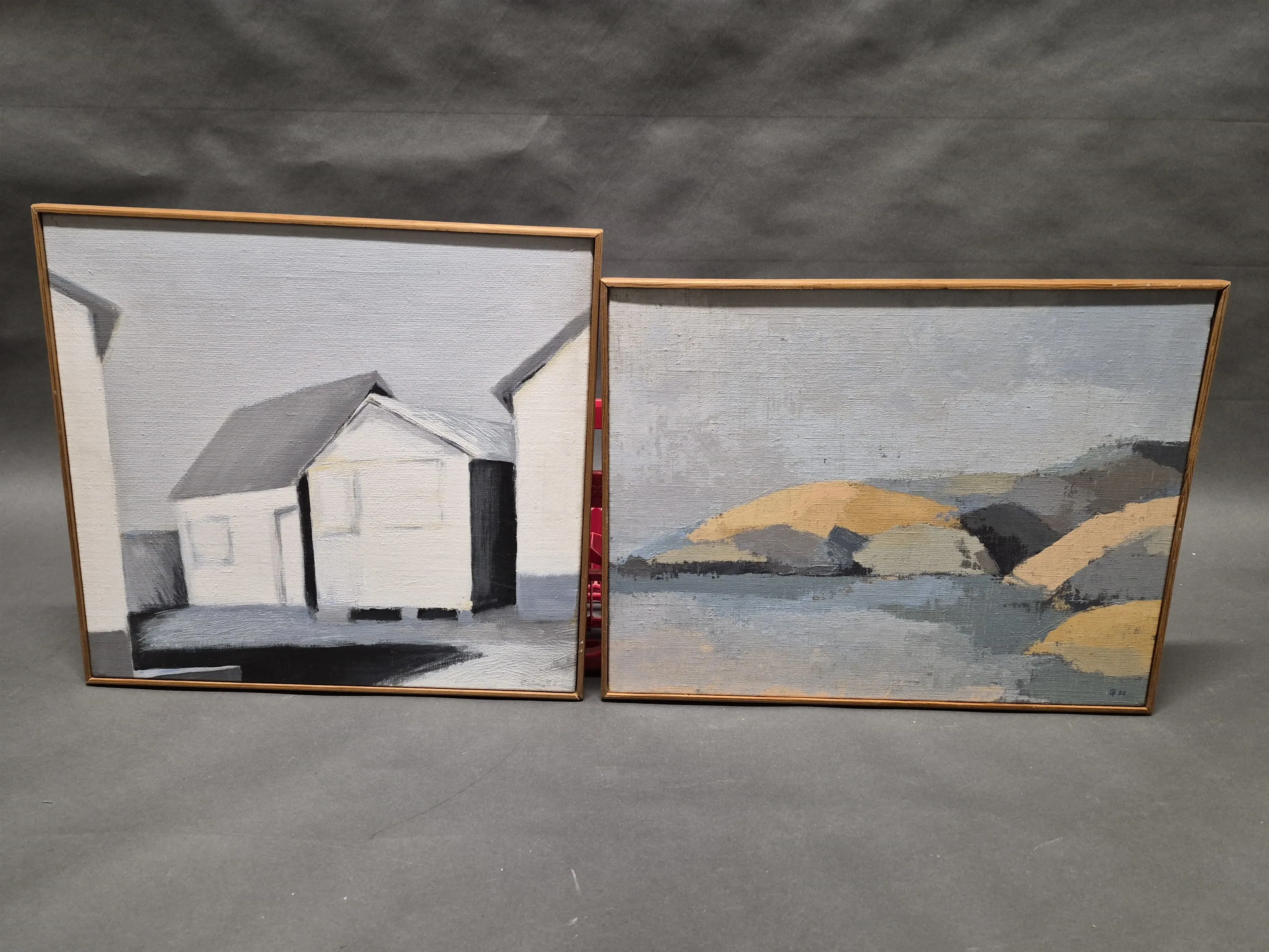 17220. Tavlor 2 st olja på duk, största mått 52 x 48 cm
