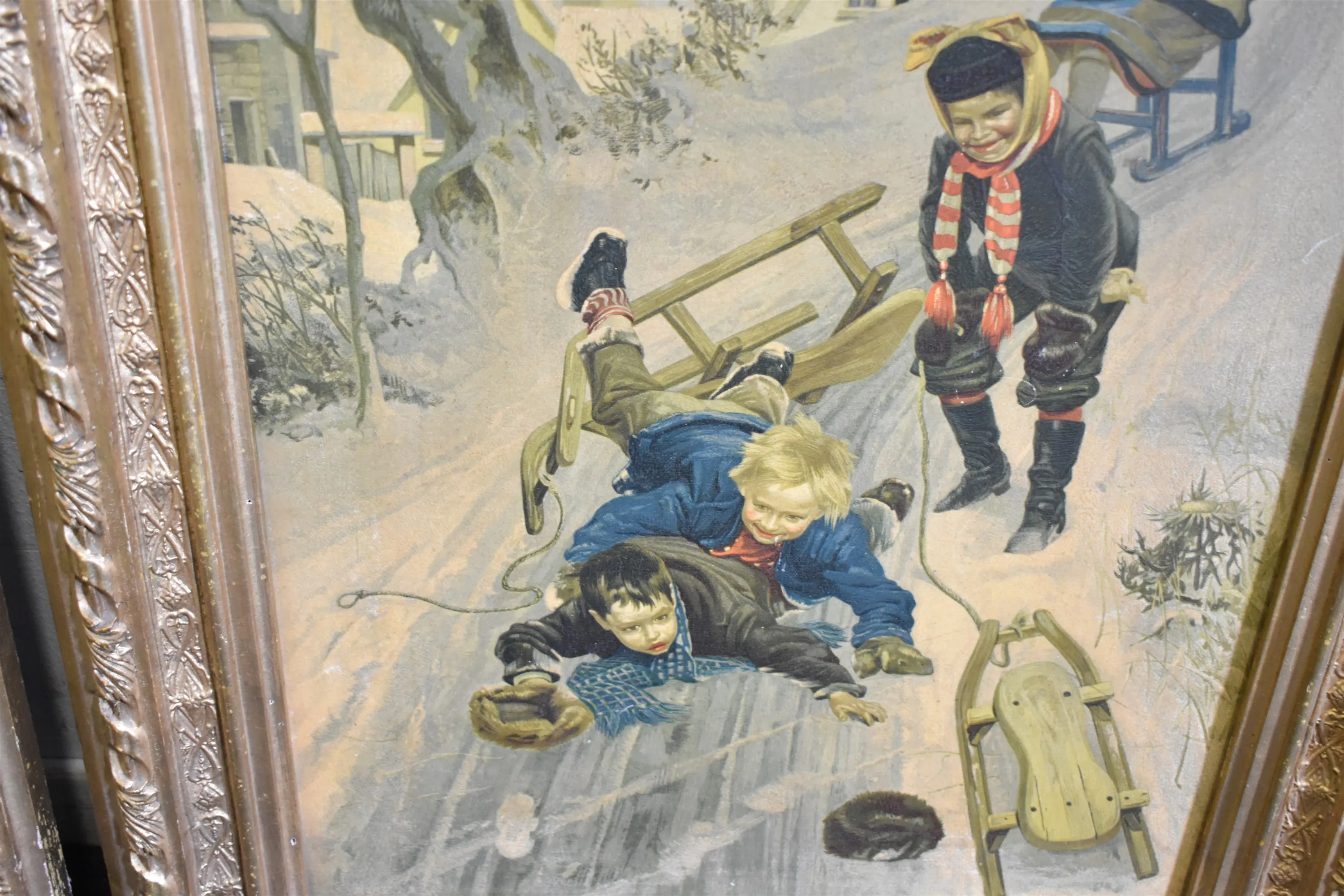 16041. Tavlor 2 st, oljetryck, ca 1900, mått 65 x 53 cm