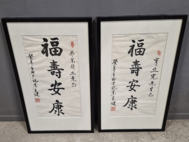 20053. Tavlor 2 st orientaliska kalligrafi mått 48 x 81 cm