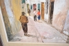 15262. Tavlor 2 st, stadsmotiv, olja på duk, största mått 38 x 68 cm
