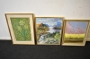 7799. Tavlor 3 st bl.a olja på duk, största mått 48 x 65 cm