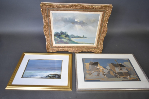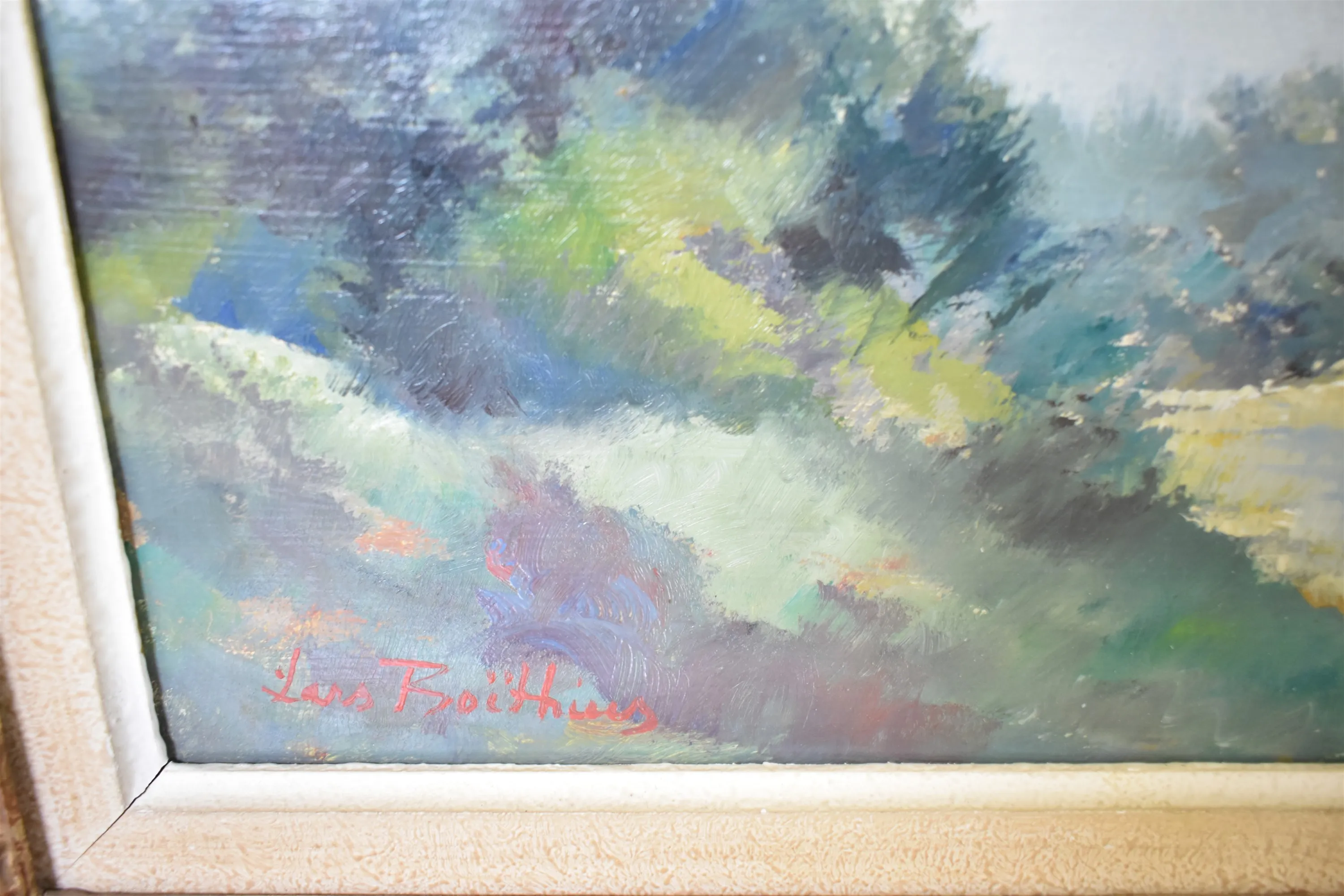 13485. Tavlor 3 st bl.a olja på pannå Lars Boëthius, största mått 57 x 46 cm