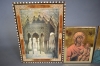 10774. Tavlor 3 st bla religöst motiv, största mått 56x40 cm