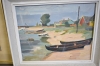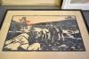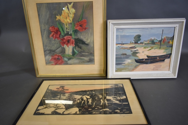 16822. Tavlor 3 st bla signerat tryck älgar och olja på pannå, största mått 62x54 cm