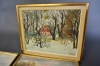 192. Tavlor 3 st, reproduktioner 2 st bl.a Fölunge ska dricka och litografi Gustav Rudberg största yttermått 40 x 40 cm