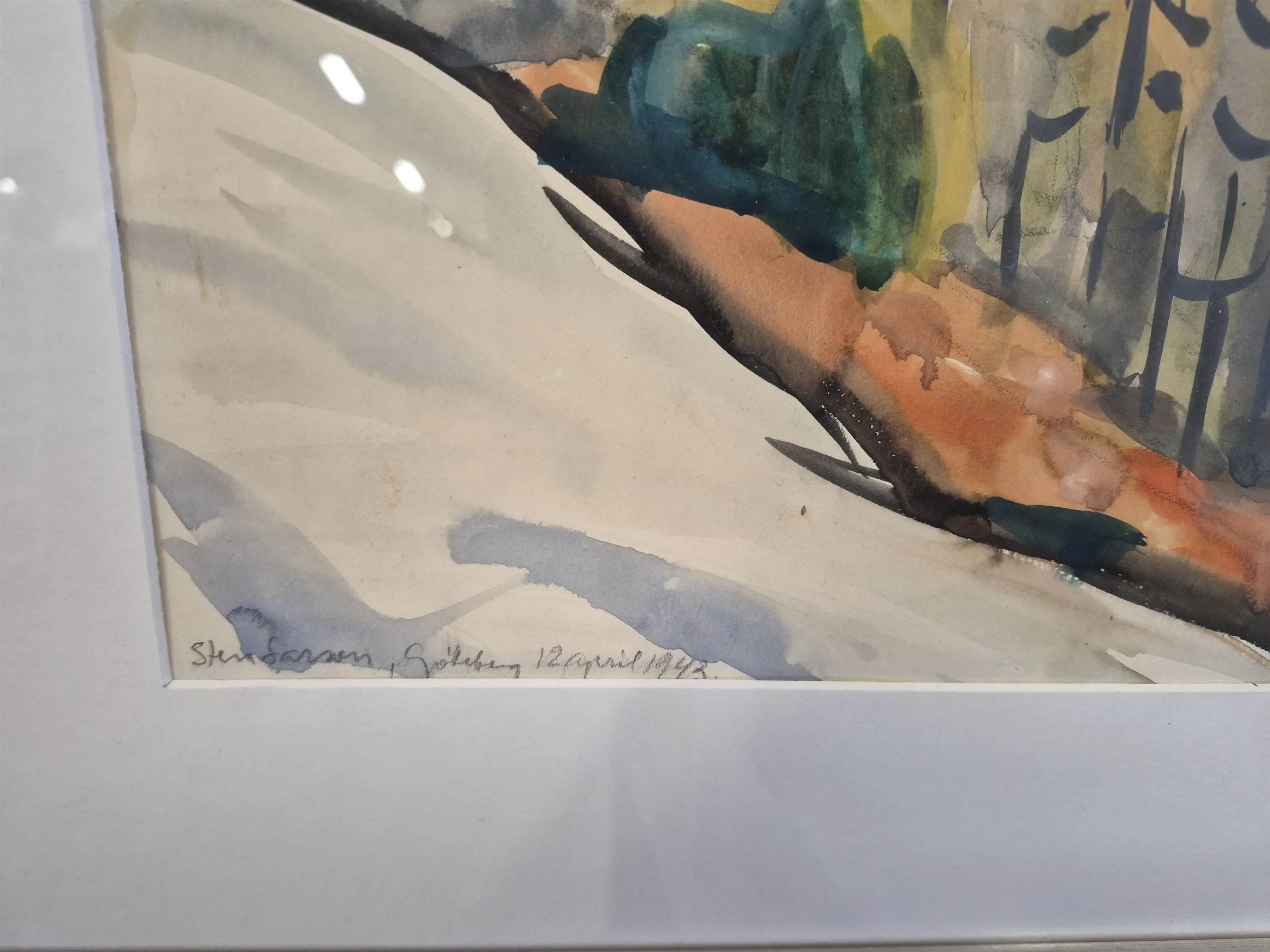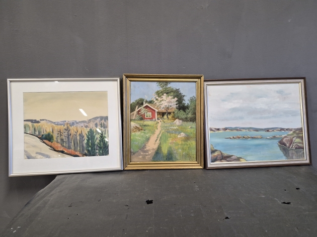 19705. Tavlor 3 st oljor & akvarell, största mått 55 x 46 cm