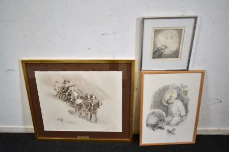 6830. Tavlor, 3 st reckning, litografi &etsning "Djurmotiv" största mått 68 x 59 cm