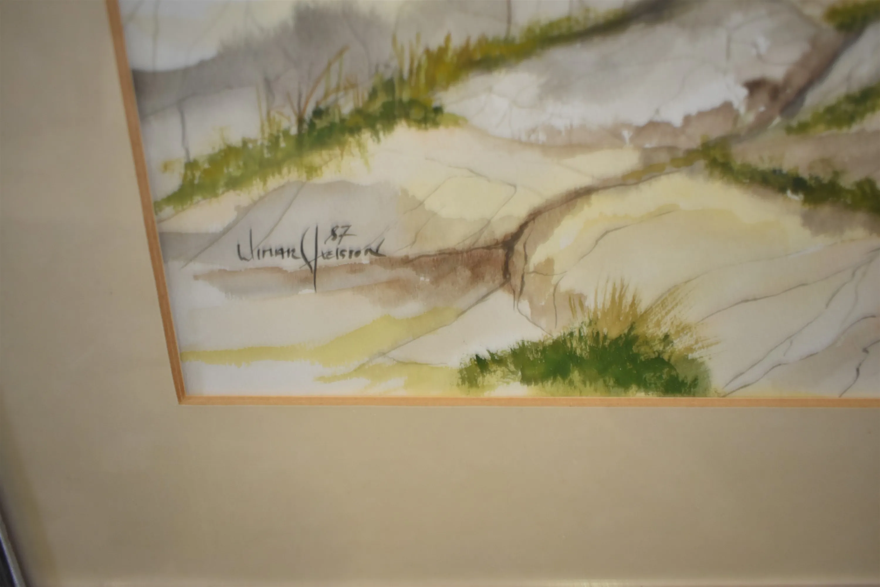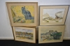 13492. Tavlor 4 st, akvareller 3 st & reproduktion, största mått 60 x 52 xm
