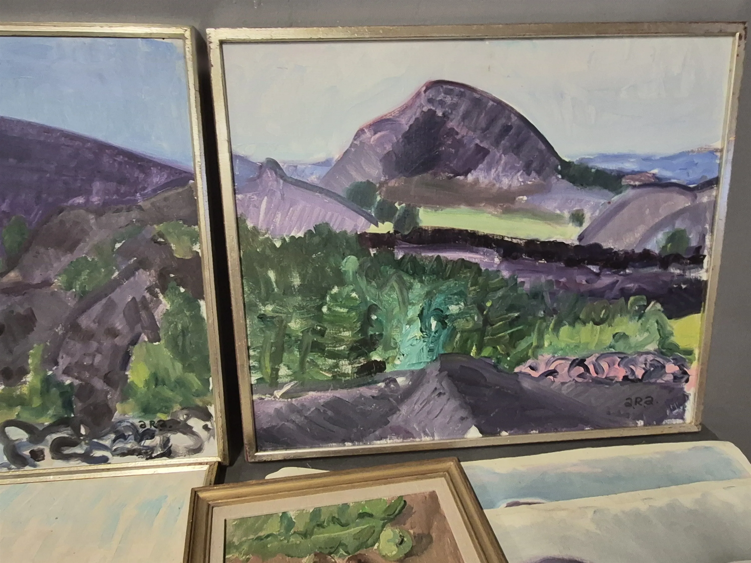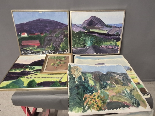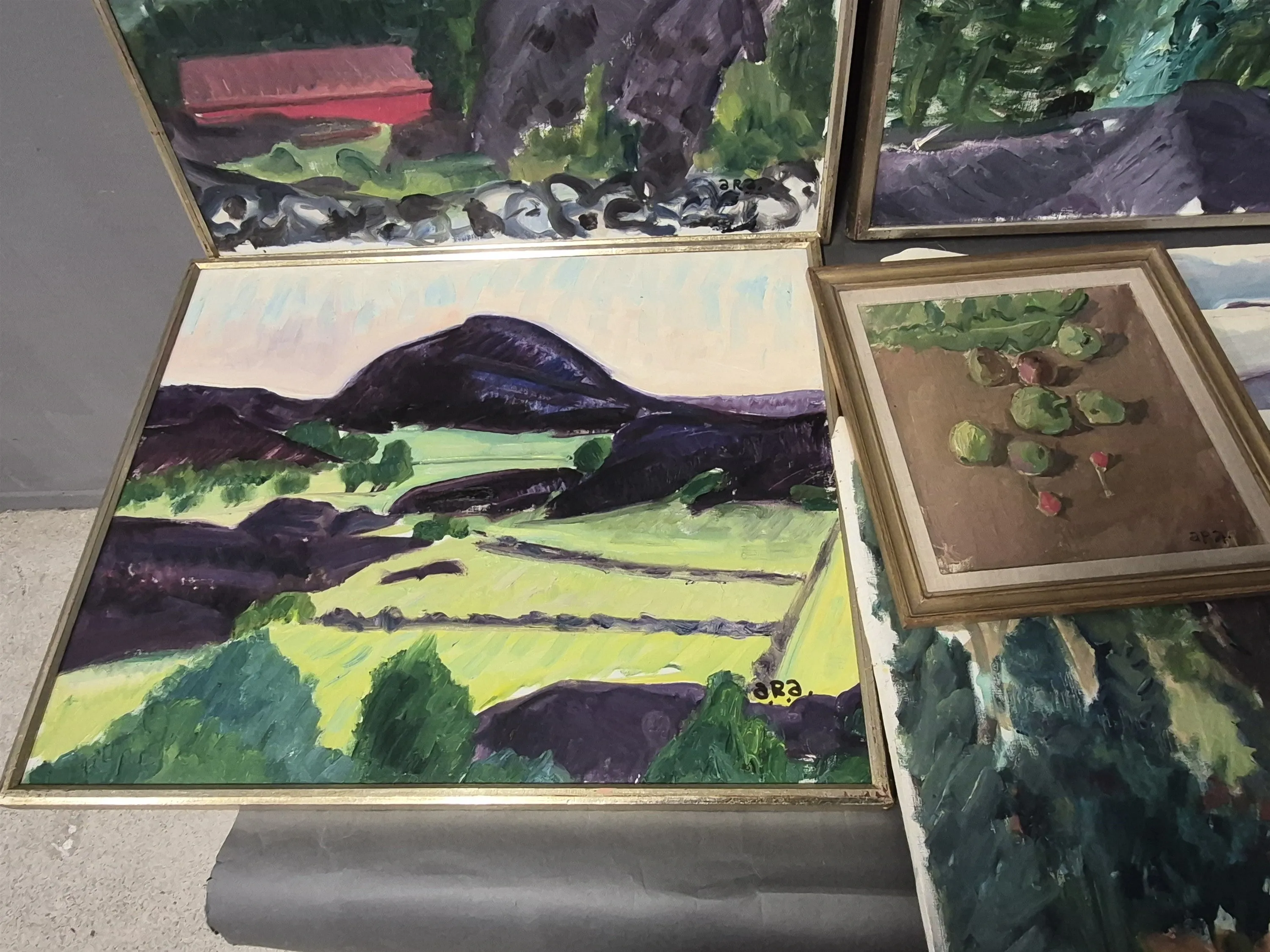 18420. Tavlor 4 st ARA, olja på duk & dukar, största mått 60 x 70 cm