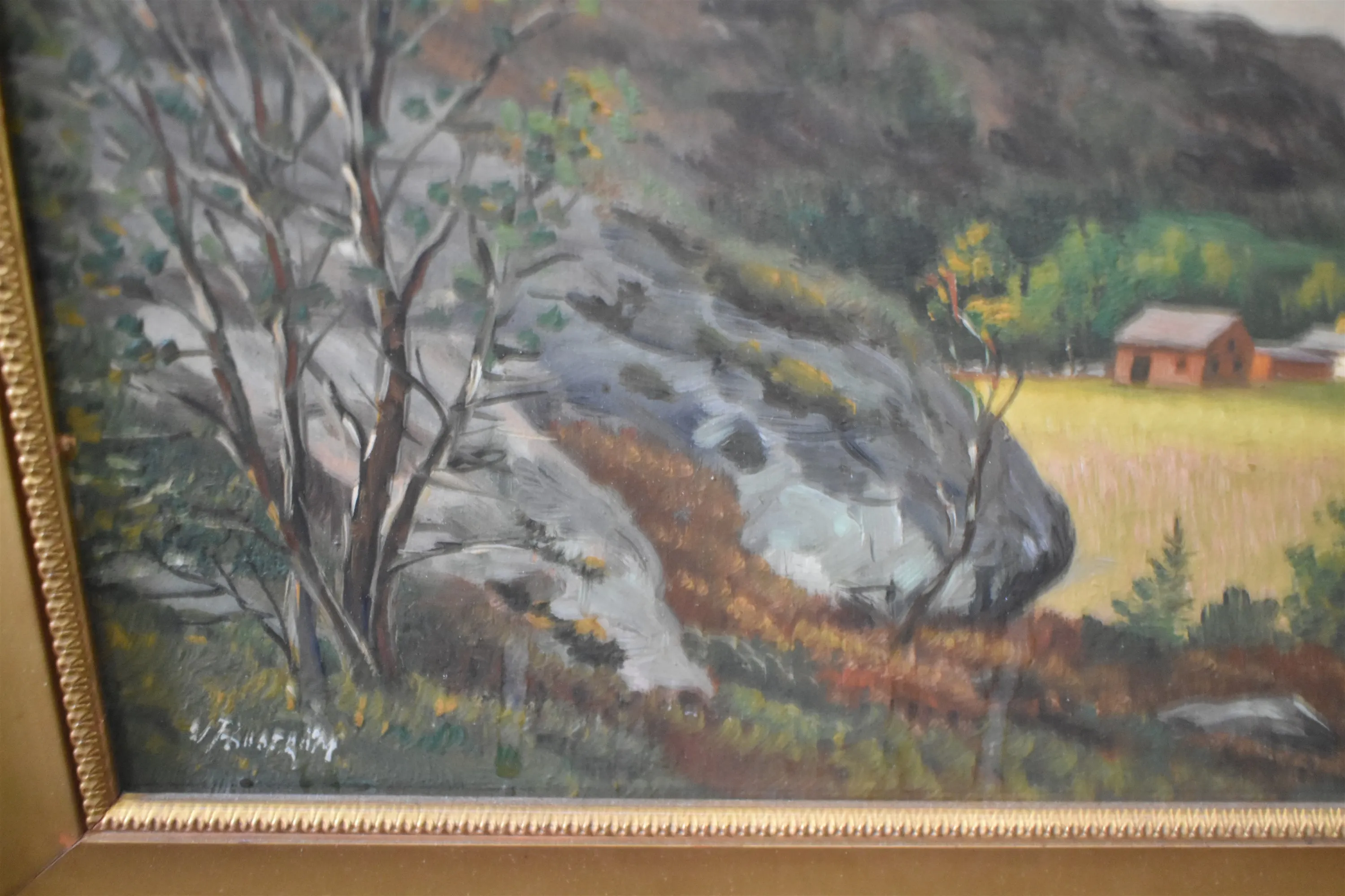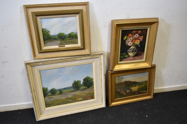13568. Tavlor 4 st bl.a Johan Hilding Hägleby, största mått 64 x 56 cm