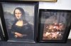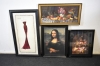 13819. Tavlor 4 st bl.a Monalisa, blomsterstilleben, största mått 112 x 62 cm