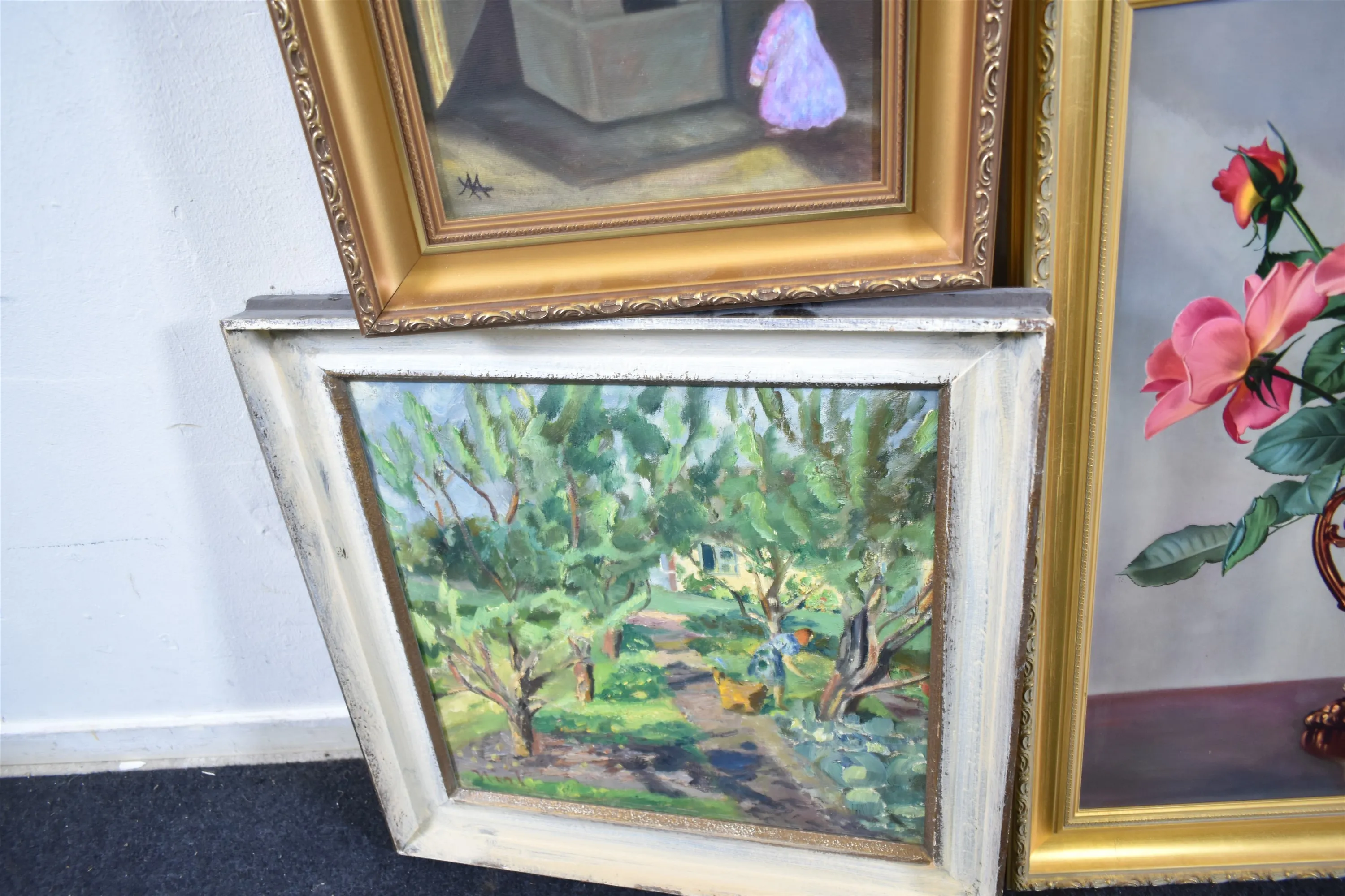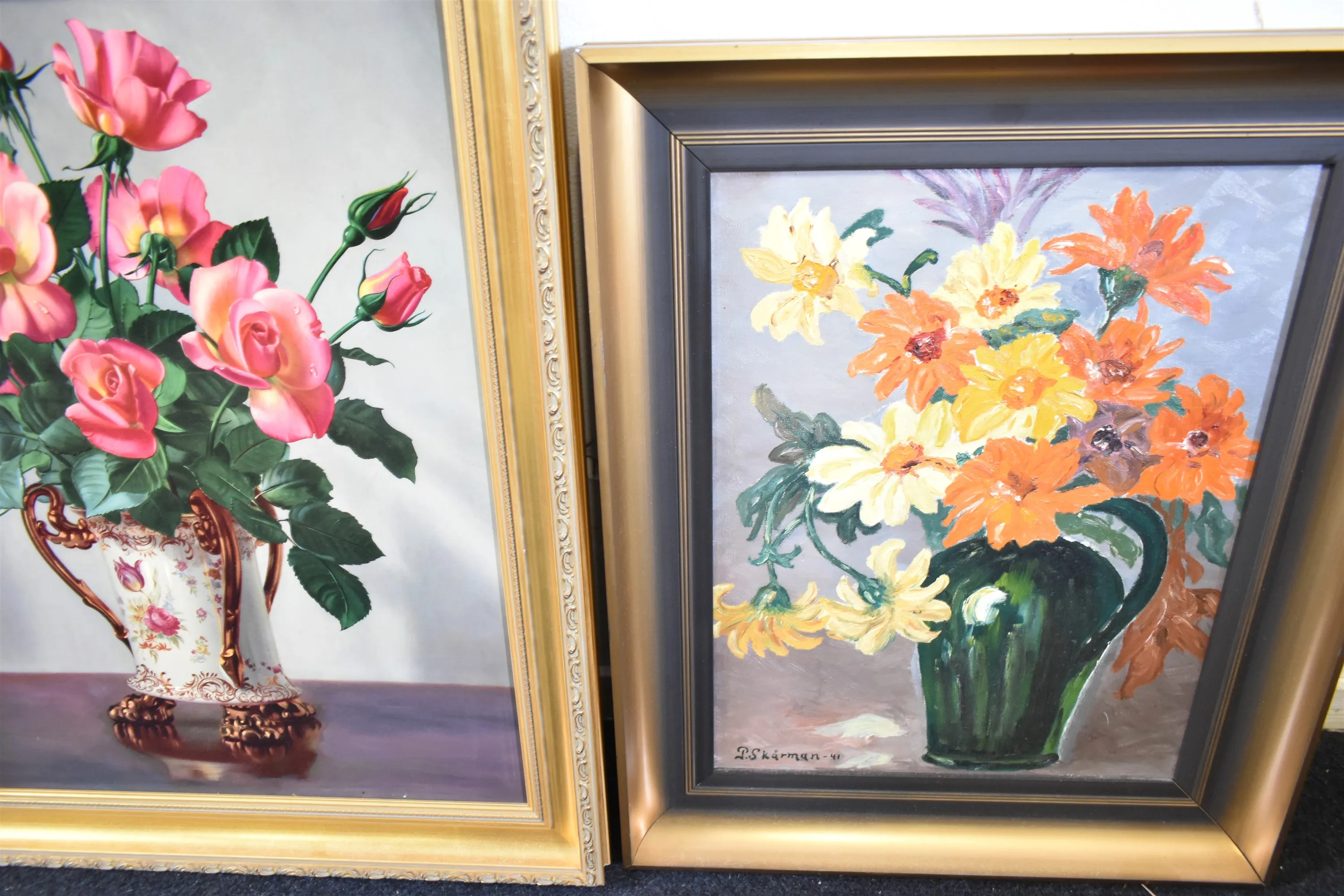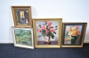 9193. Tavlor 4 st bl.a oljor, största 60 x 70 cm