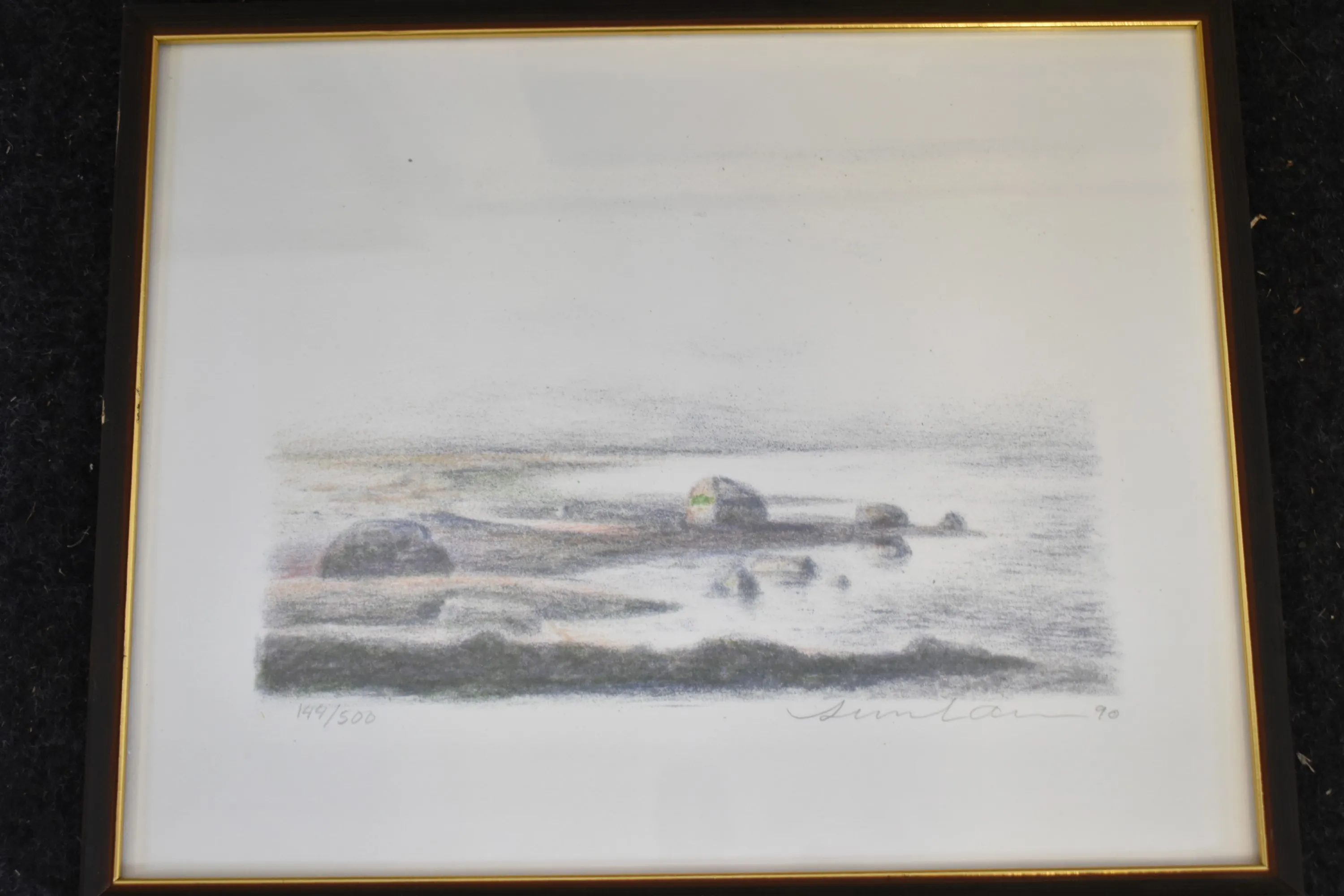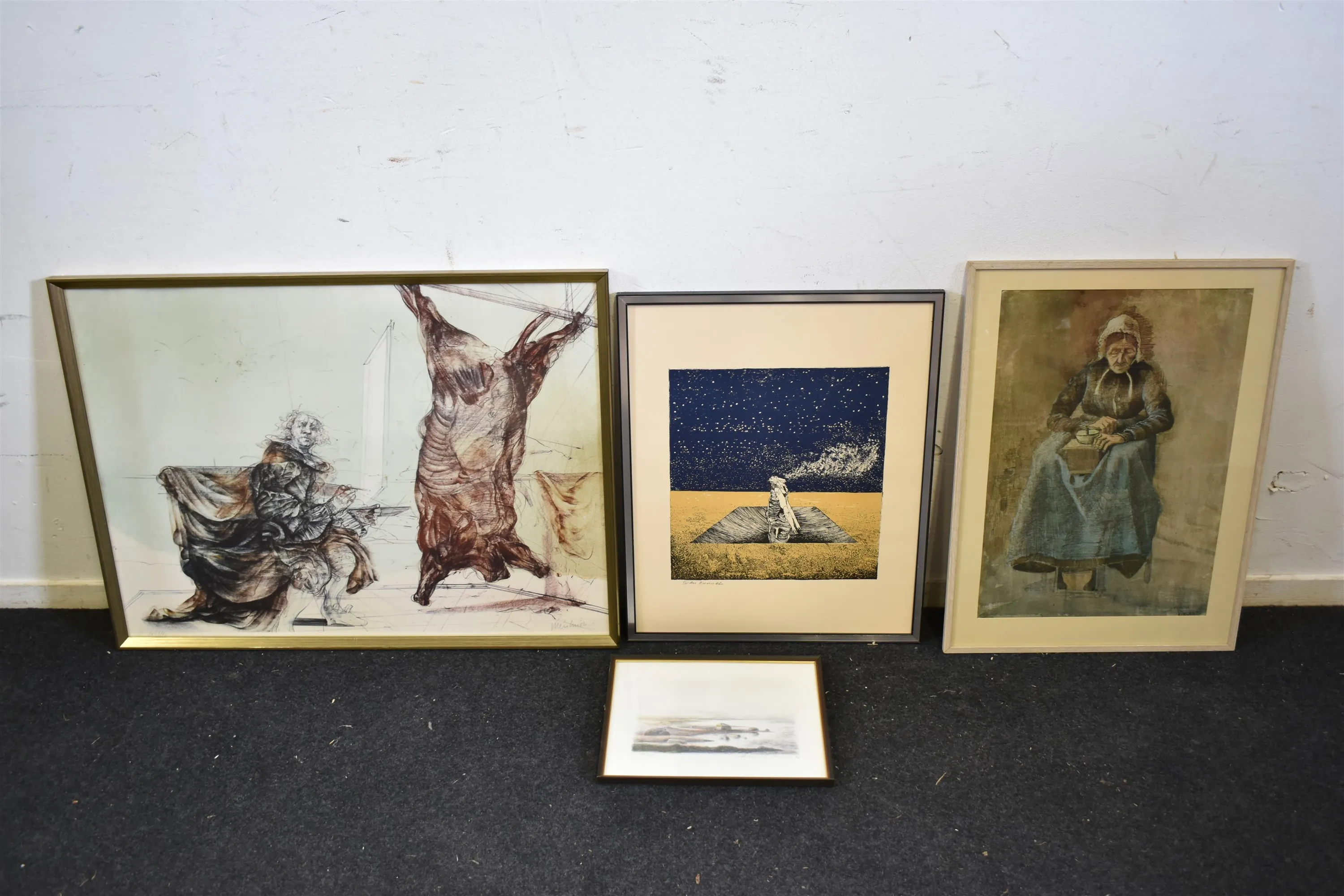 11966. Tavlor 4 st bla litografier, största mått 78x59 cm
