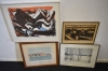 16601. Tavlor 4 st, litografi 3 st & träsnitt största mått 71 x 57 cm