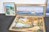 2361. Tavlor 4 st olja på duk, signaturer finns, bl,a Fiskebåtar Smögen, största mått 102 cm x 76 cm